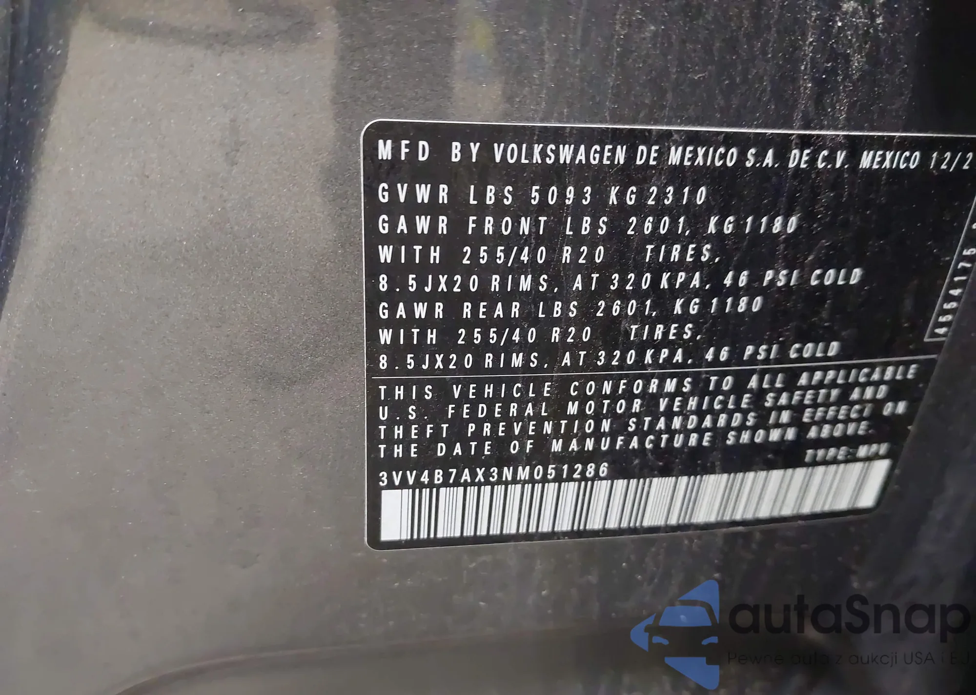 • VIN 3VV4B7AX3NM051286