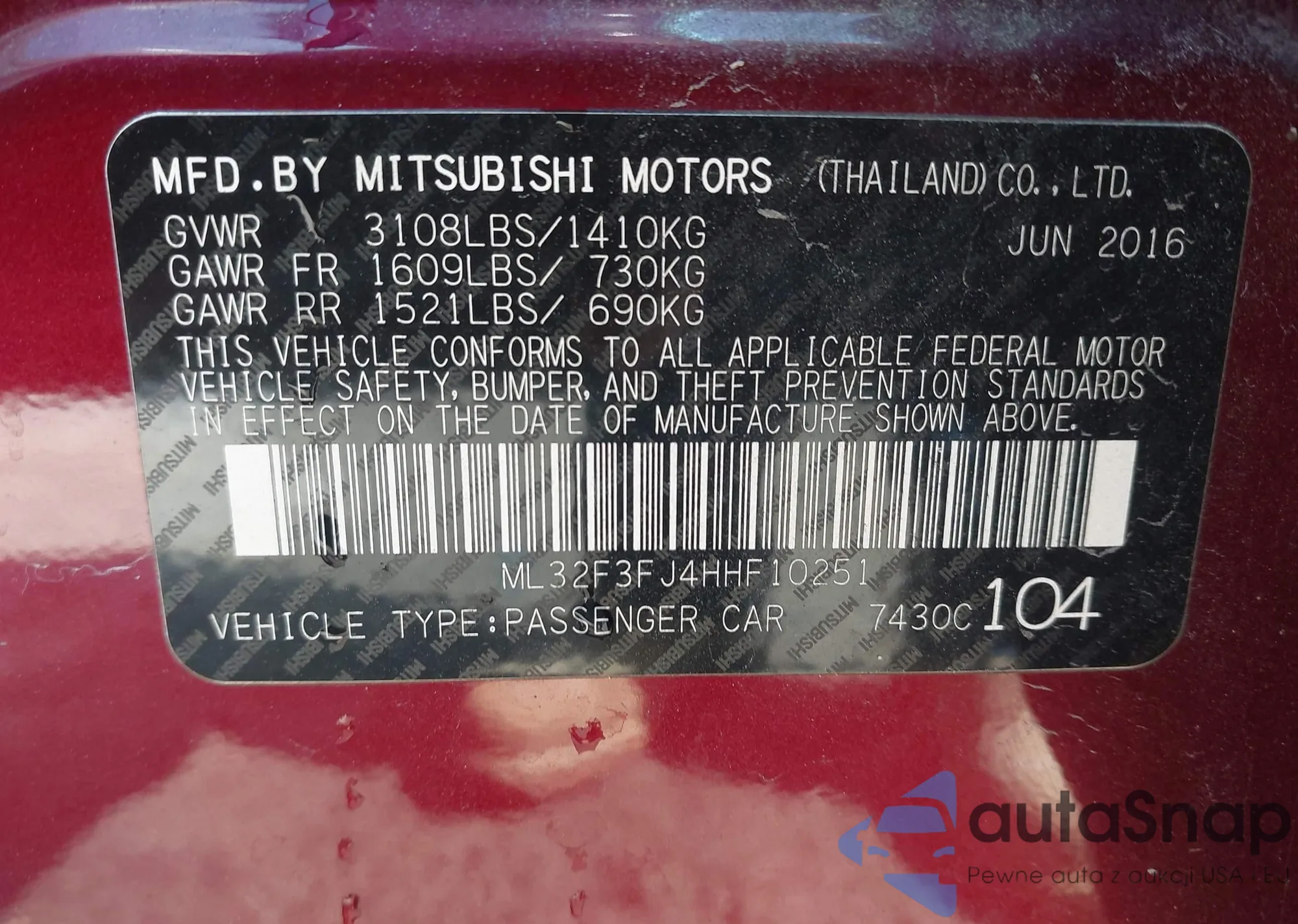 LOT: 42803348 VIN: ML32F3FJ4HHF10251