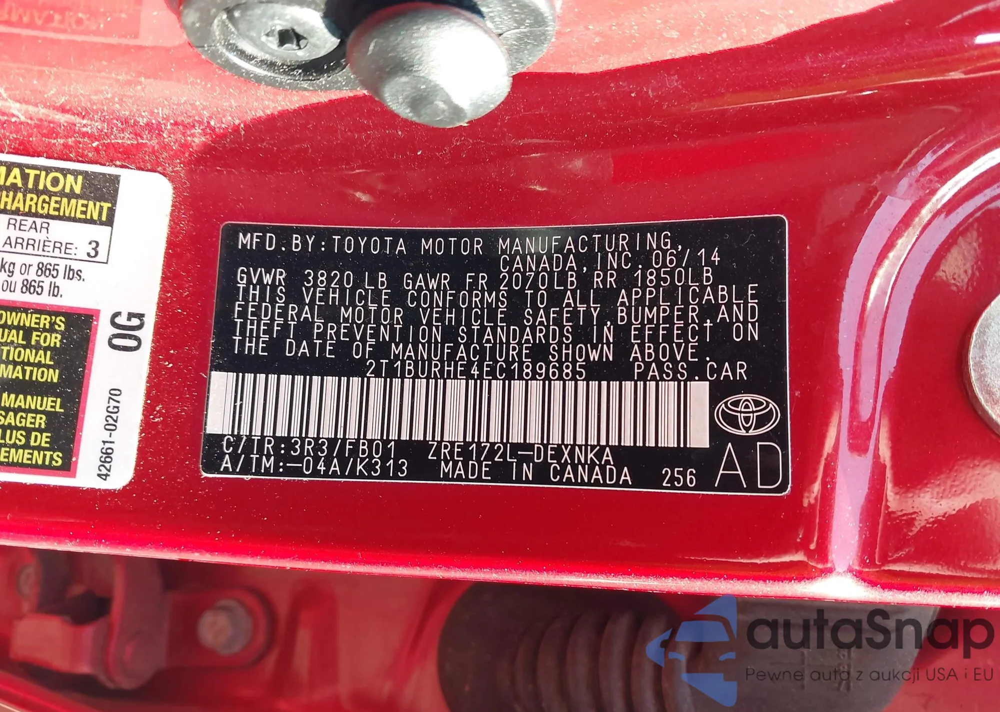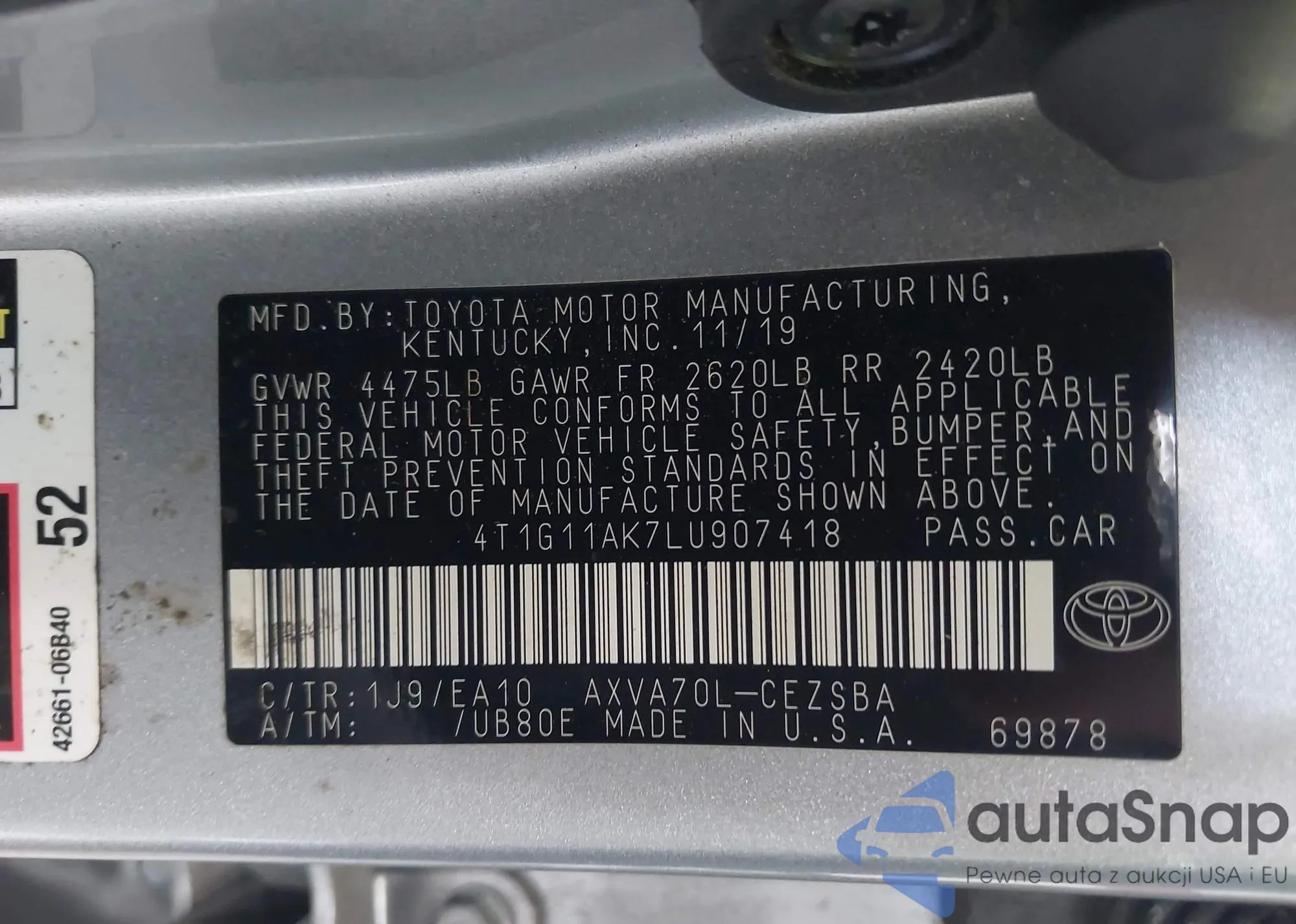 LOT: 42550161 VIN: 4T1G11AK7LU907418