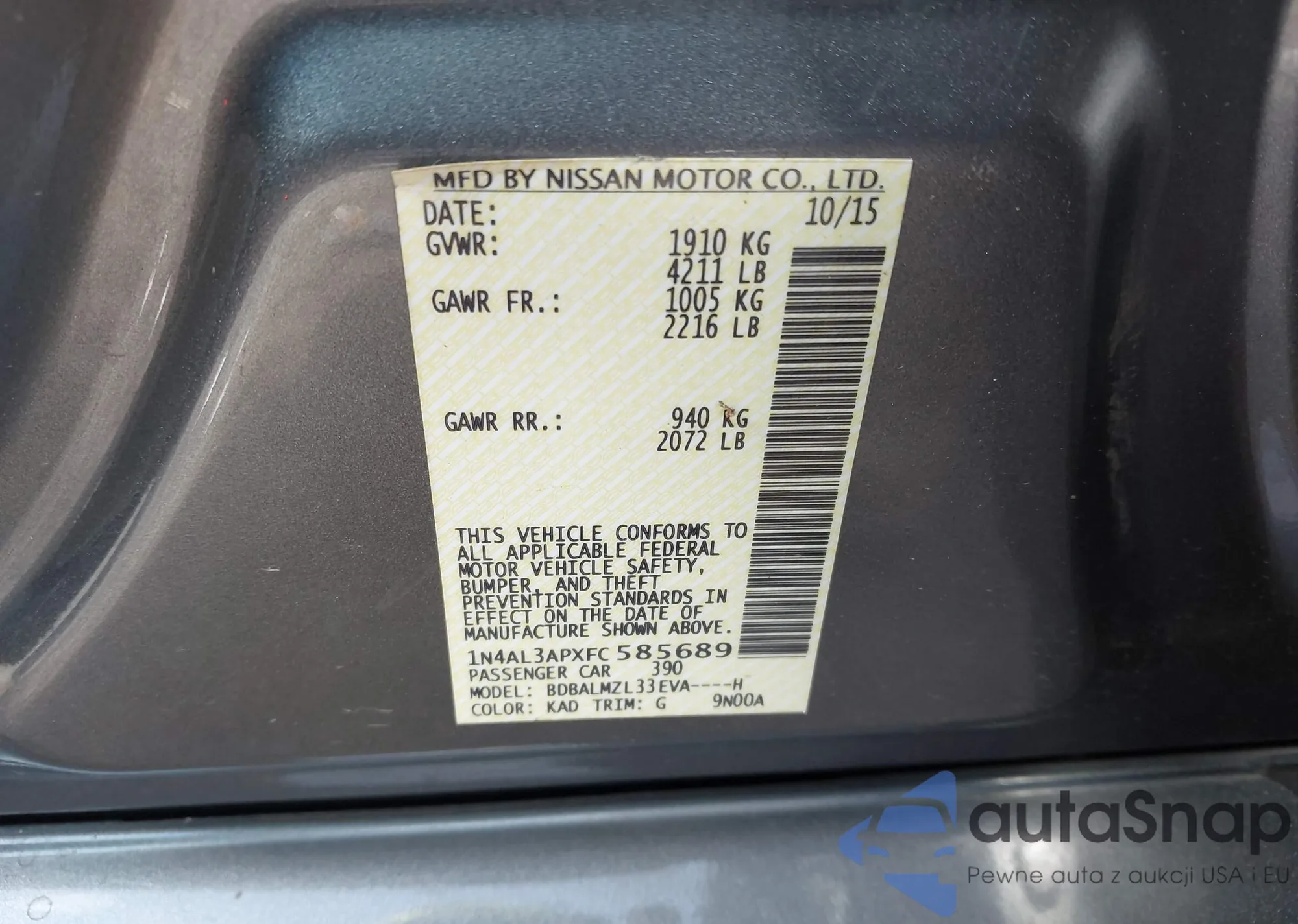 LOT: 42514980 VIN: 1N4AL3APXFC585689