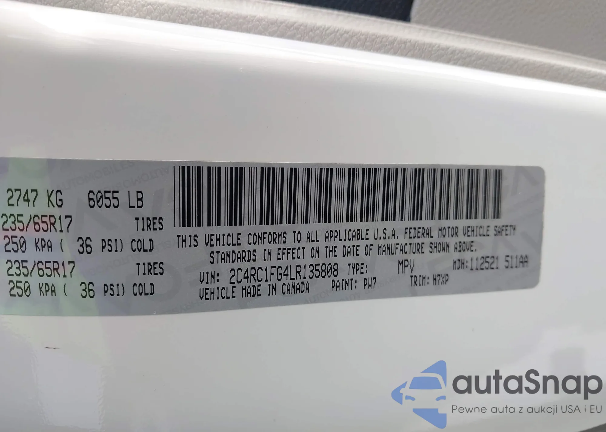 • VIN 2C4RC1FG4LR135808