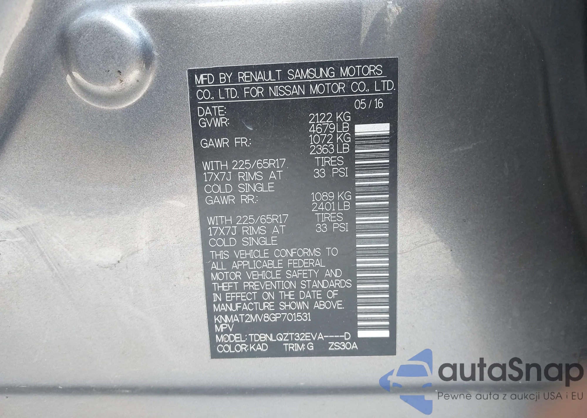 • VIN KNMAT2MV8GP701531