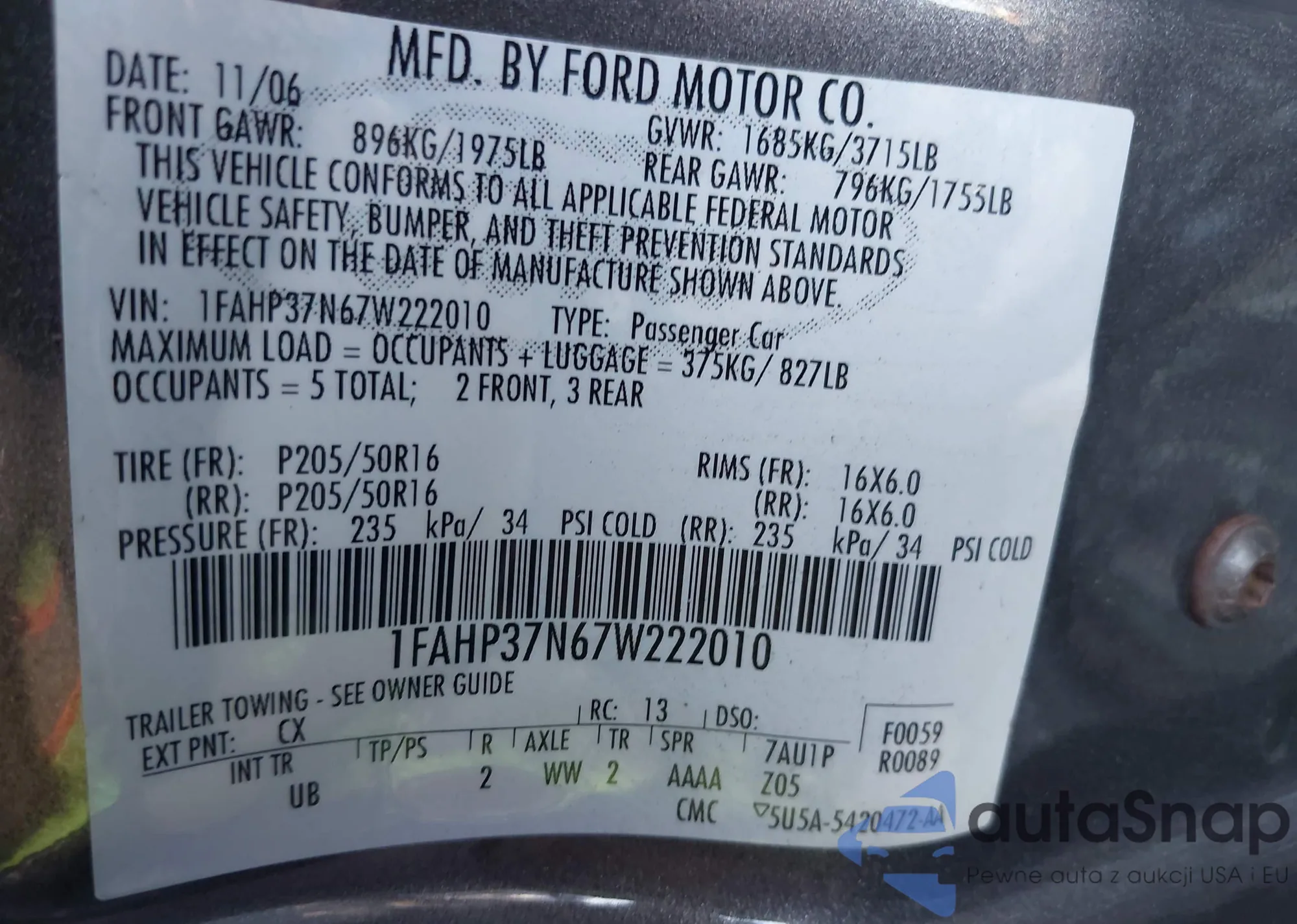 • VIN 4T1G11AK7LU907418