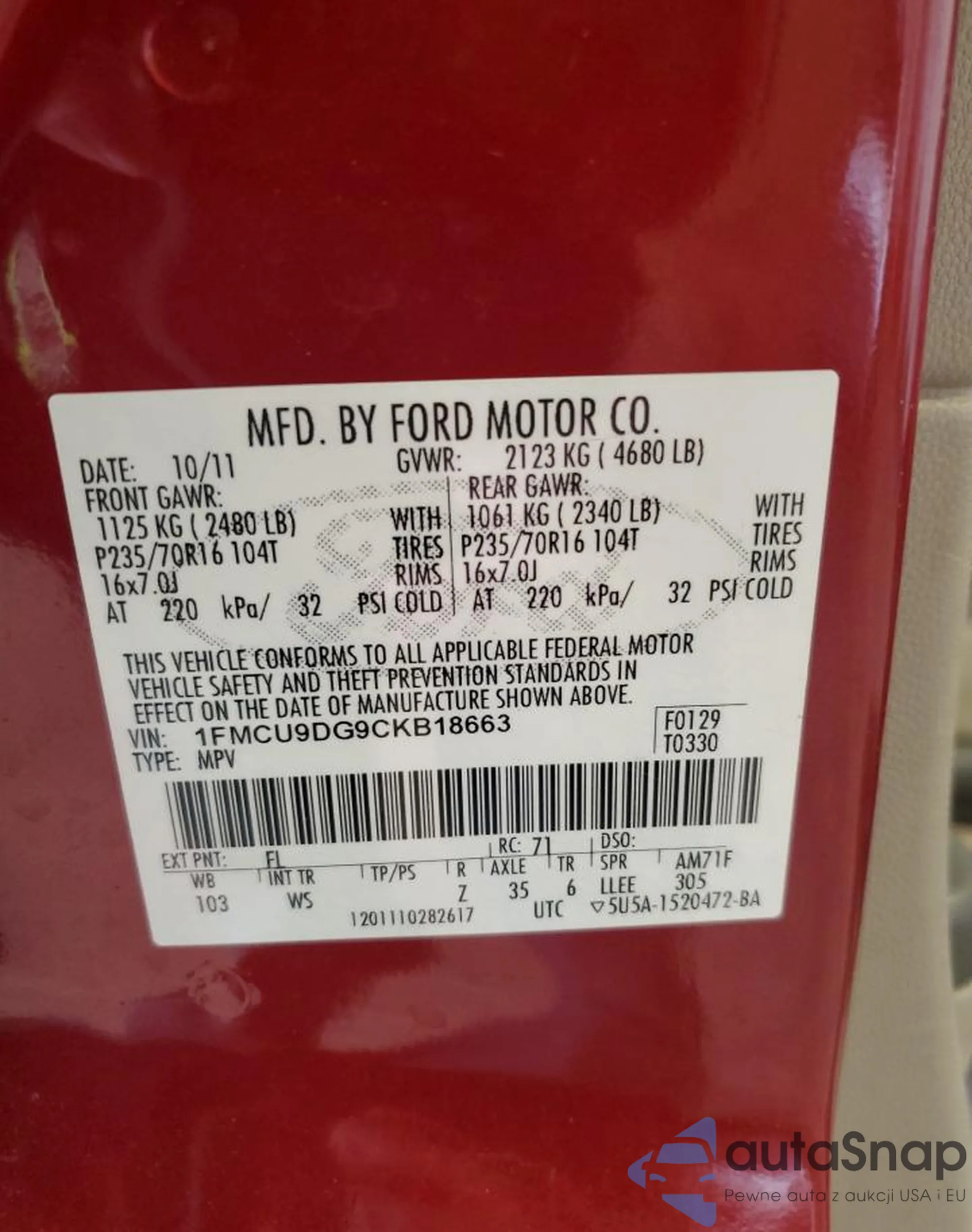 • VIN 1FMCU9DG9CKB18663