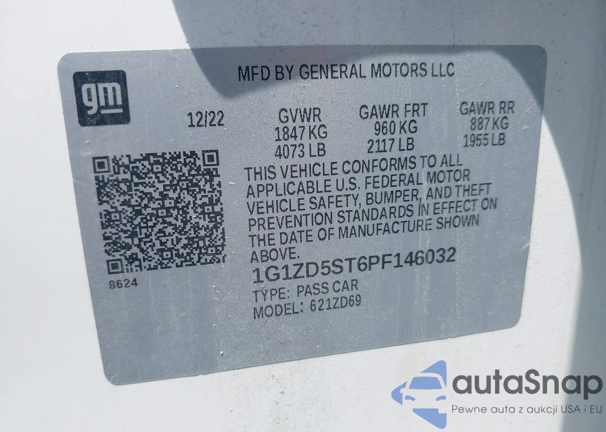 LOT: 42286199 VIN: 1G1ZD5ST6PF146032