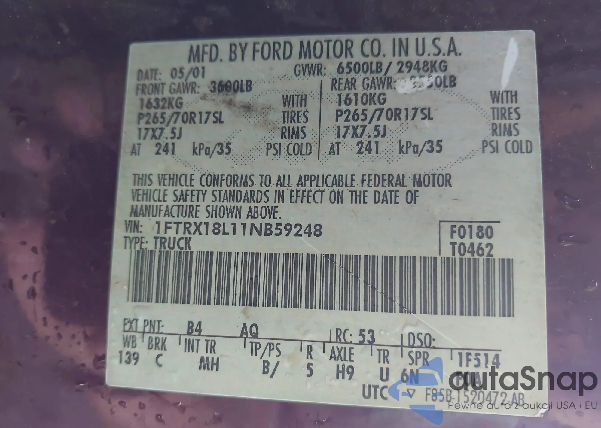 • VIN 1FTRX18L11NB59248