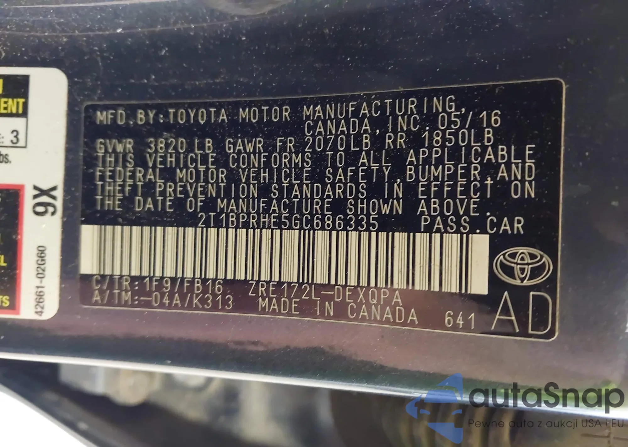 • VIN 2T1BPRHE5GC686335
