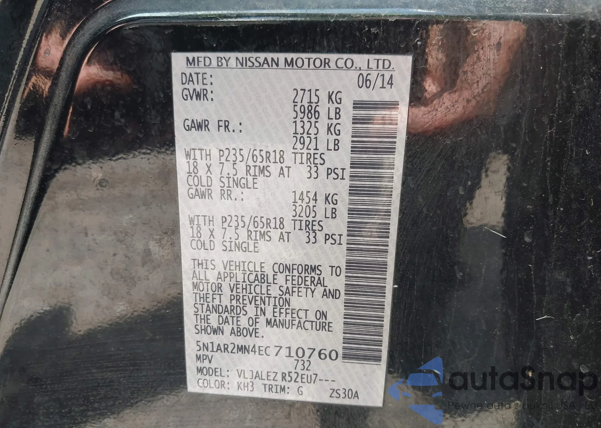 • VIN 5N1AR2MN4EC710760