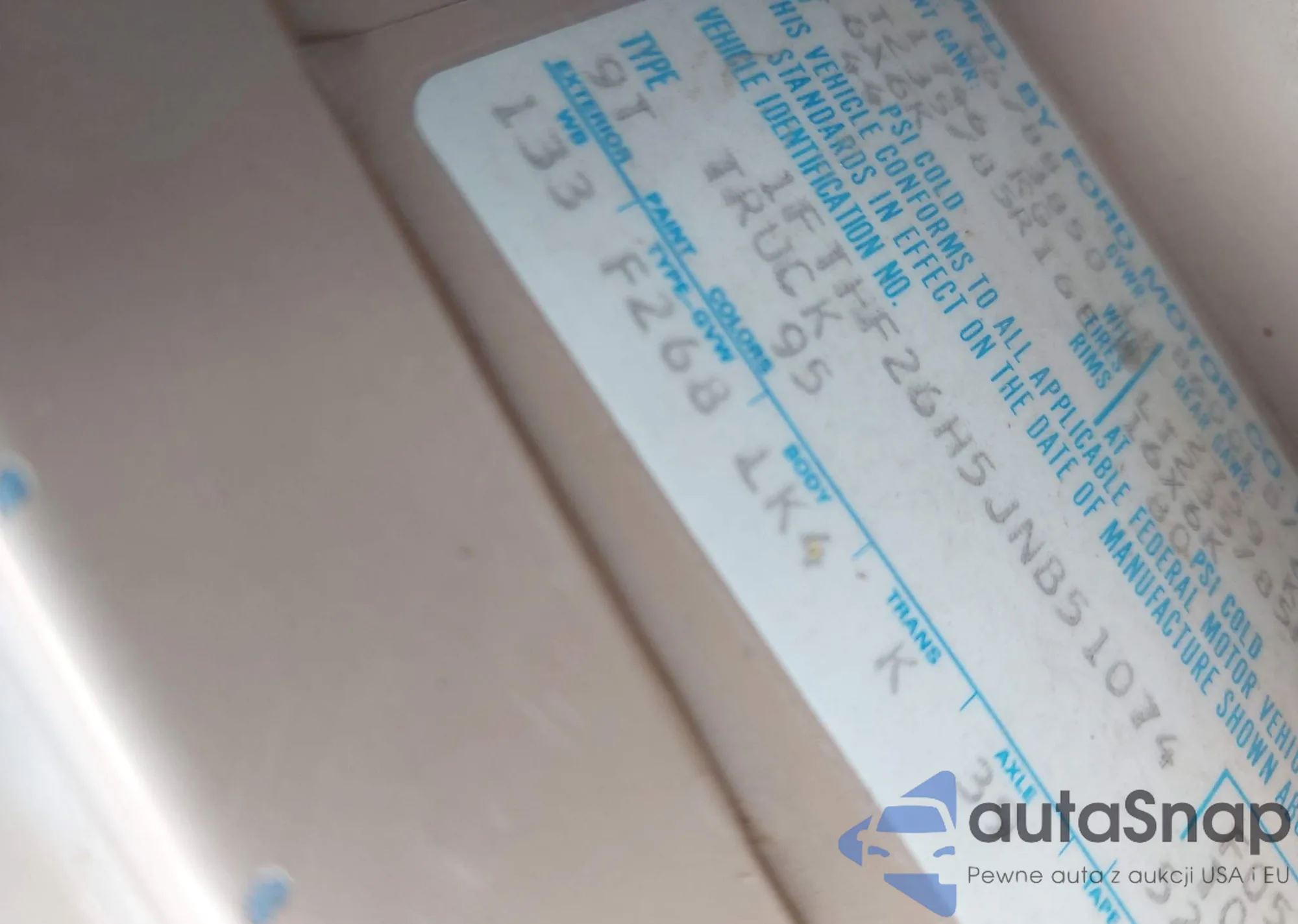 • VIN 1FTHF26H5JNB51074