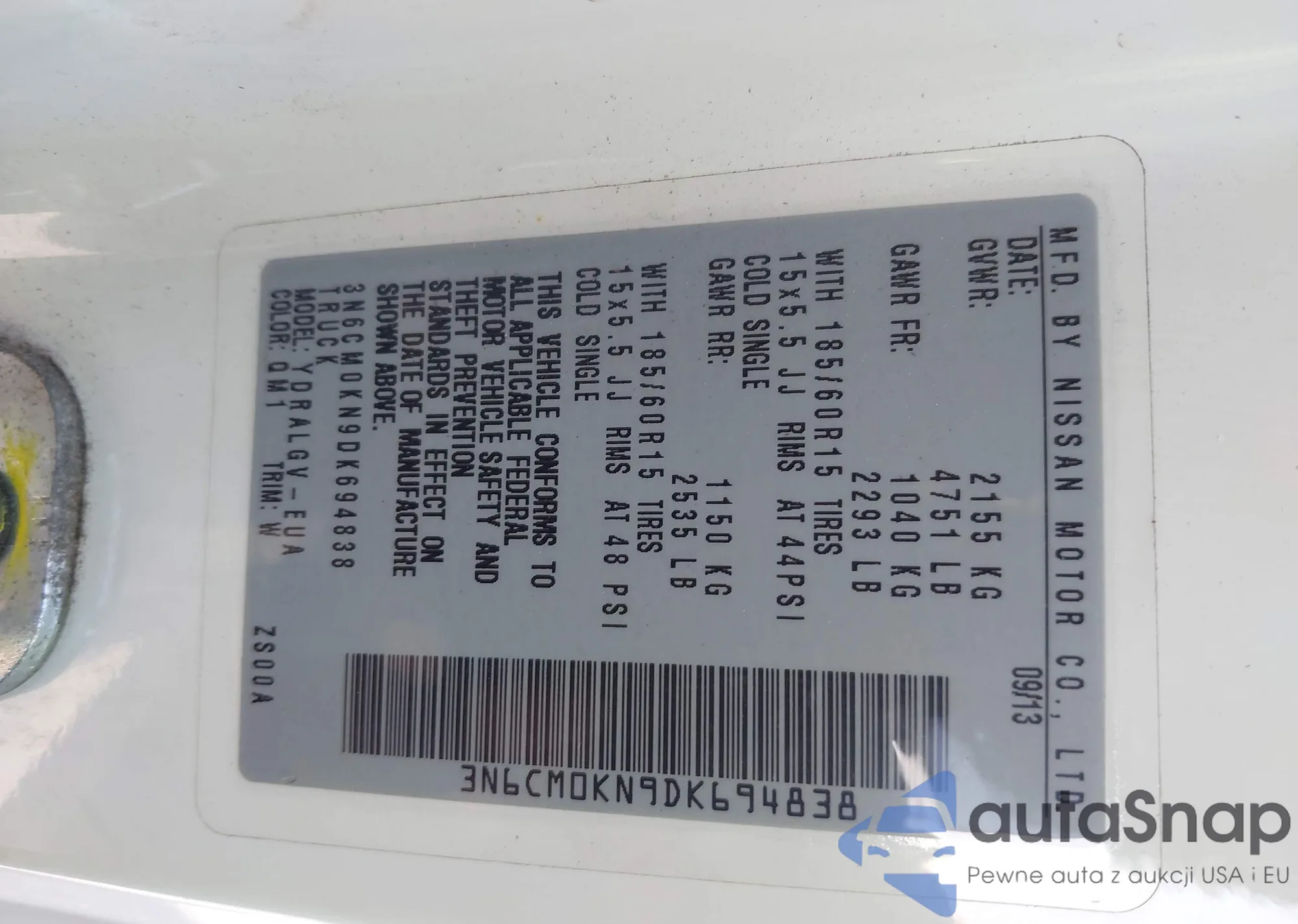 • VIN 3N6CM0KN9DK694838
