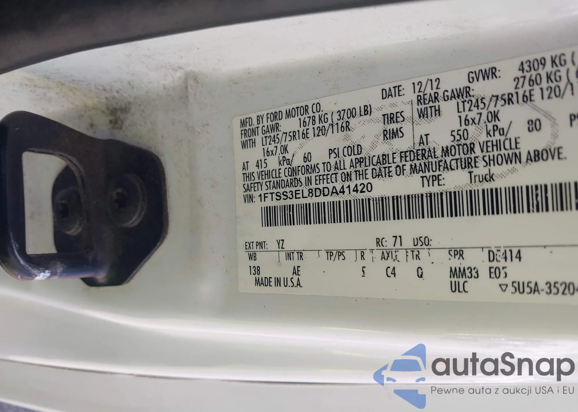 LOT: 42668120 VIN: 1FTSS3EL8DDA41420