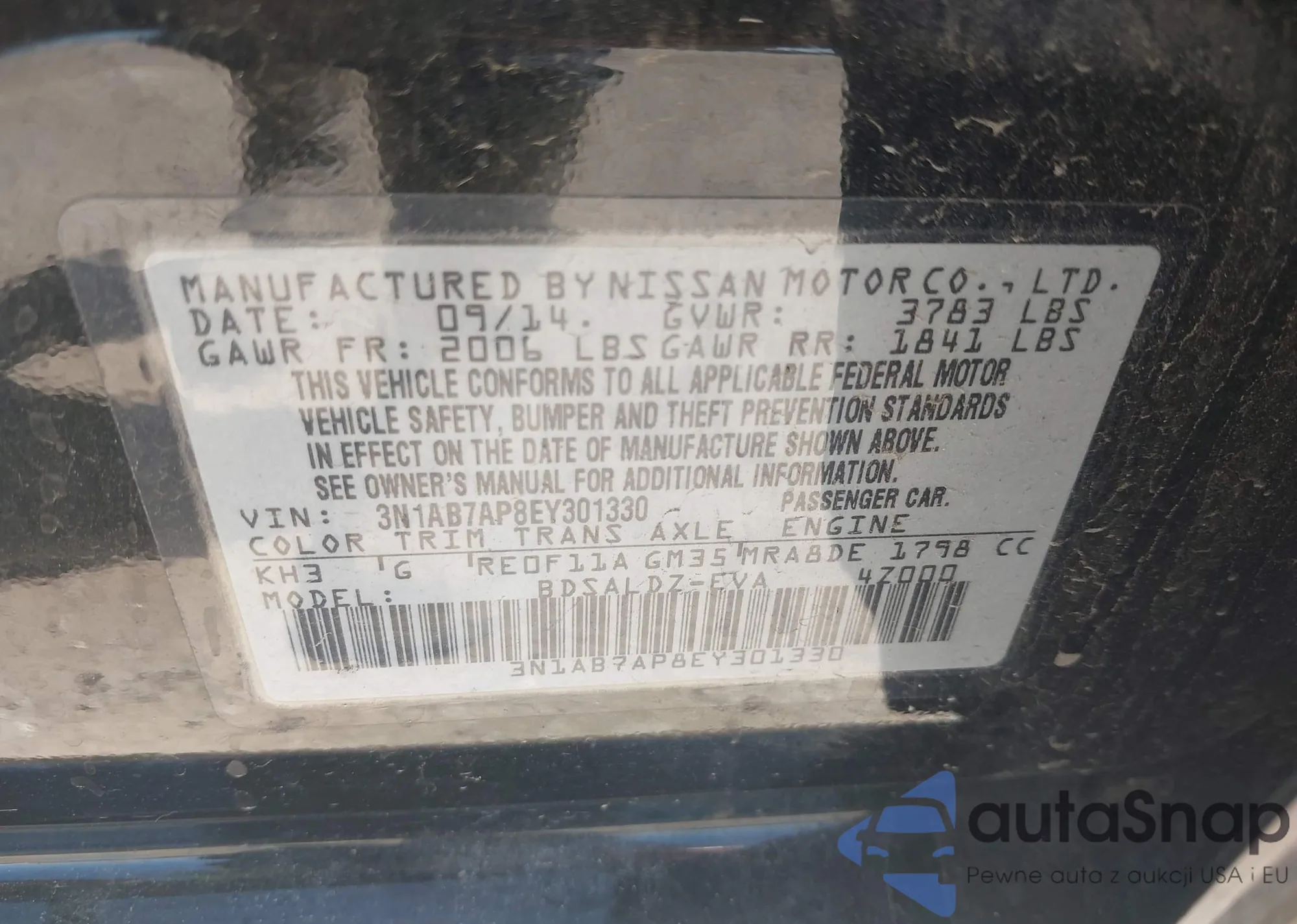 • VIN 3N1AB7AP8EY301330