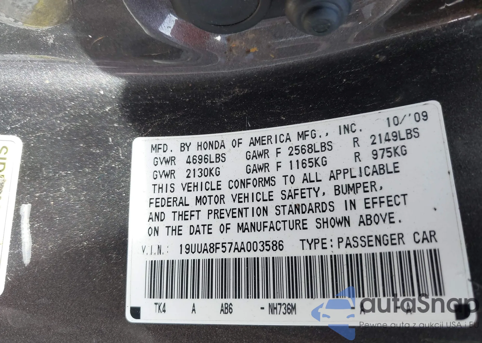 • VIN 19UUA8F57AA003586