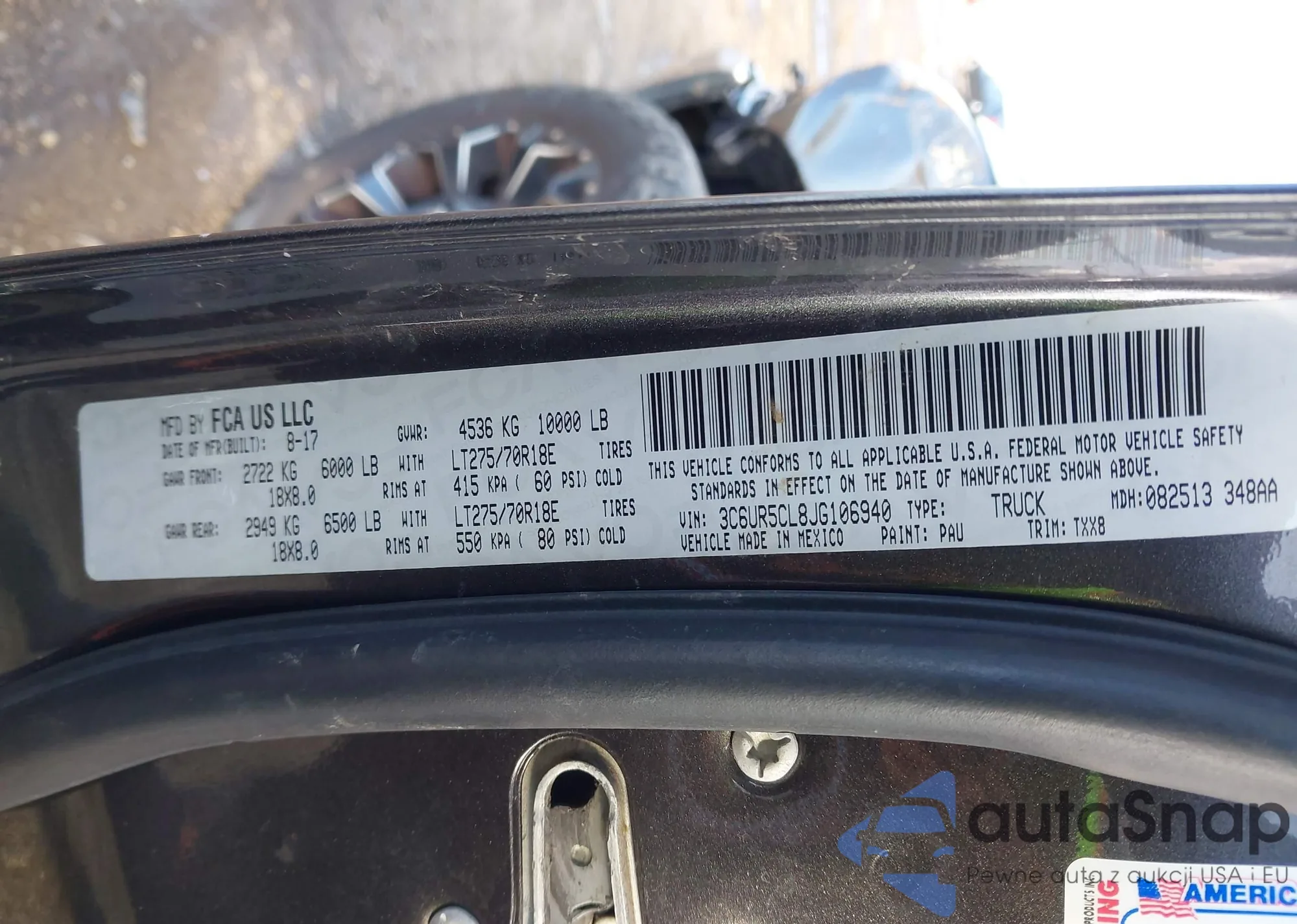 LOT: 41985217 VIN: 3C6UR5CL8JG106940