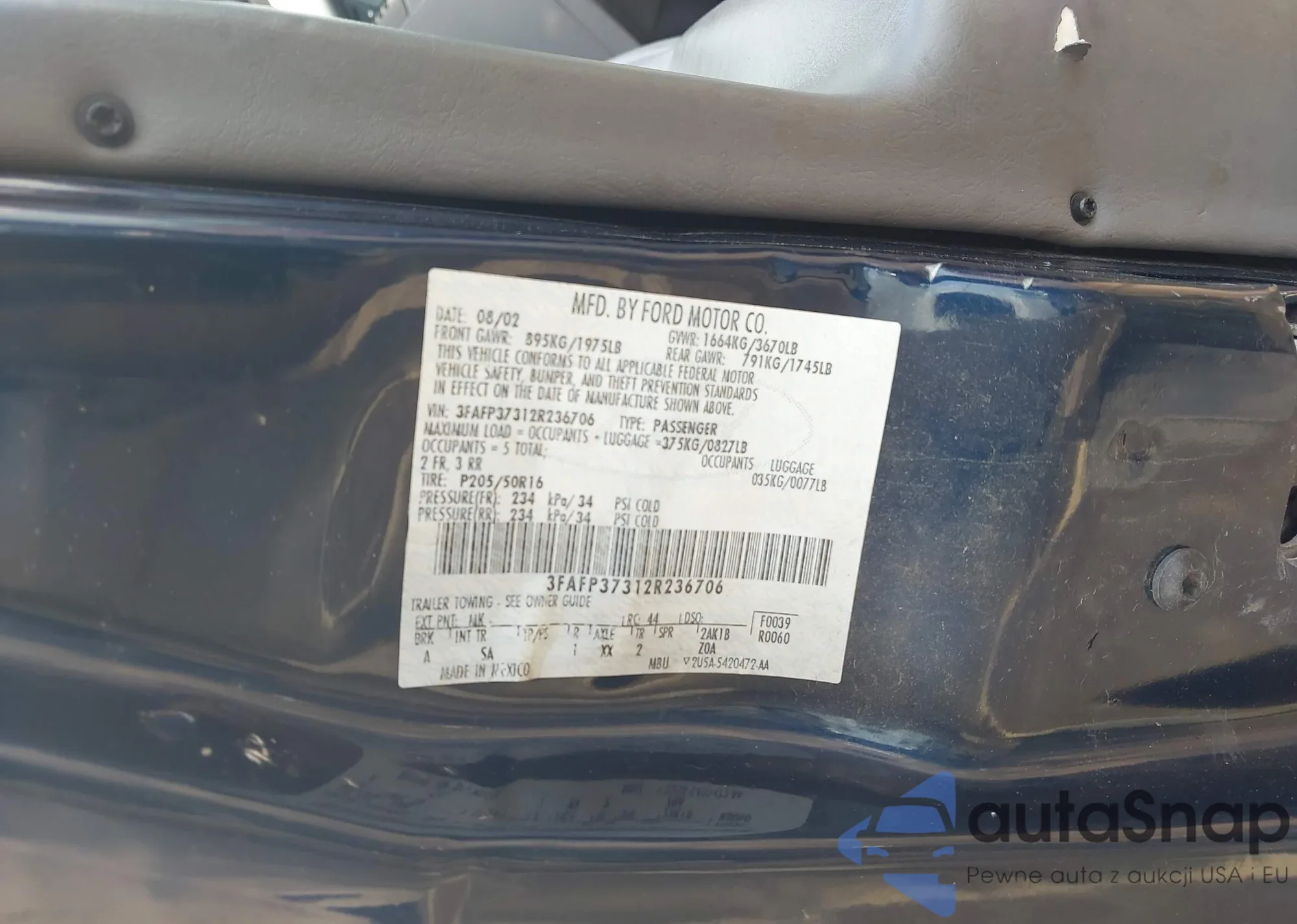 LOT: 42428991 VIN: 3FAFP37312R236706