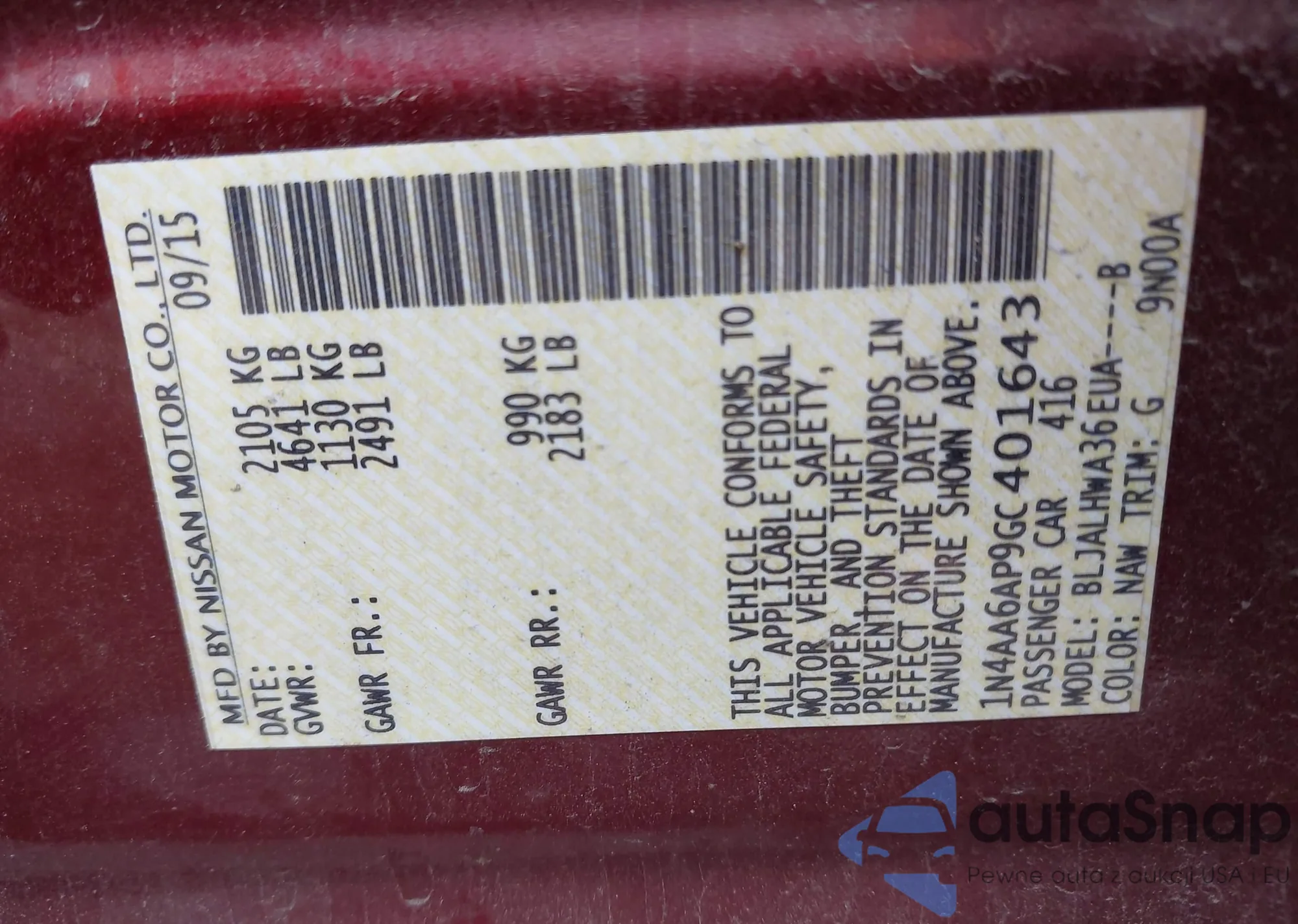 • VIN 1N4AA6AP9GC401643
