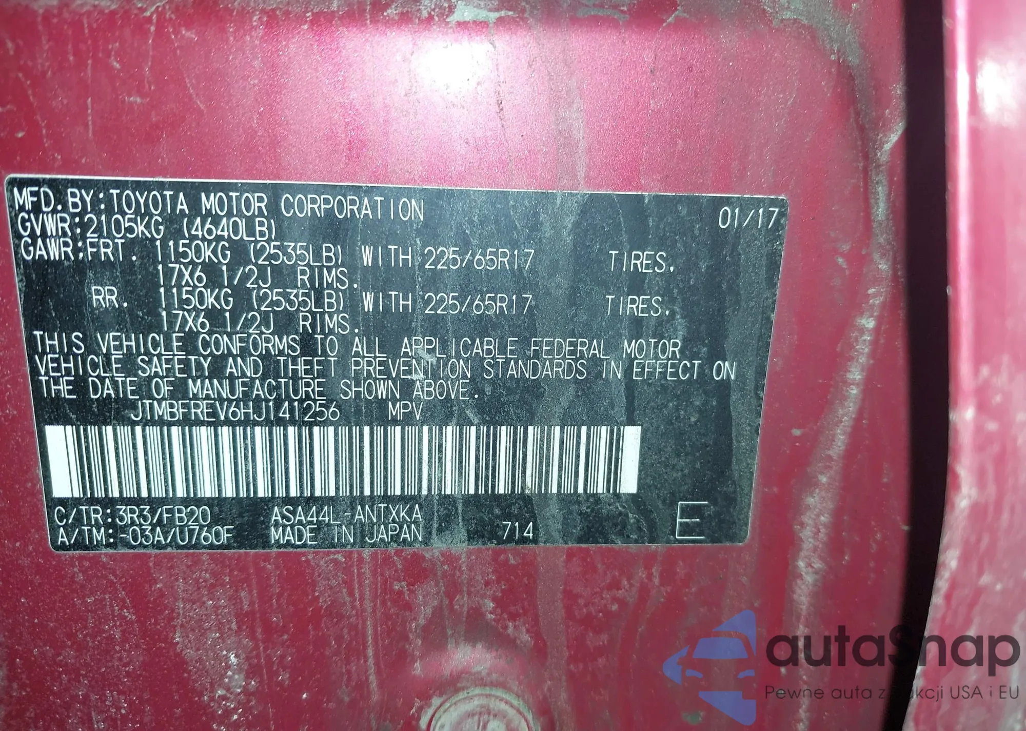 • VIN JTMBFREV6HJ141256