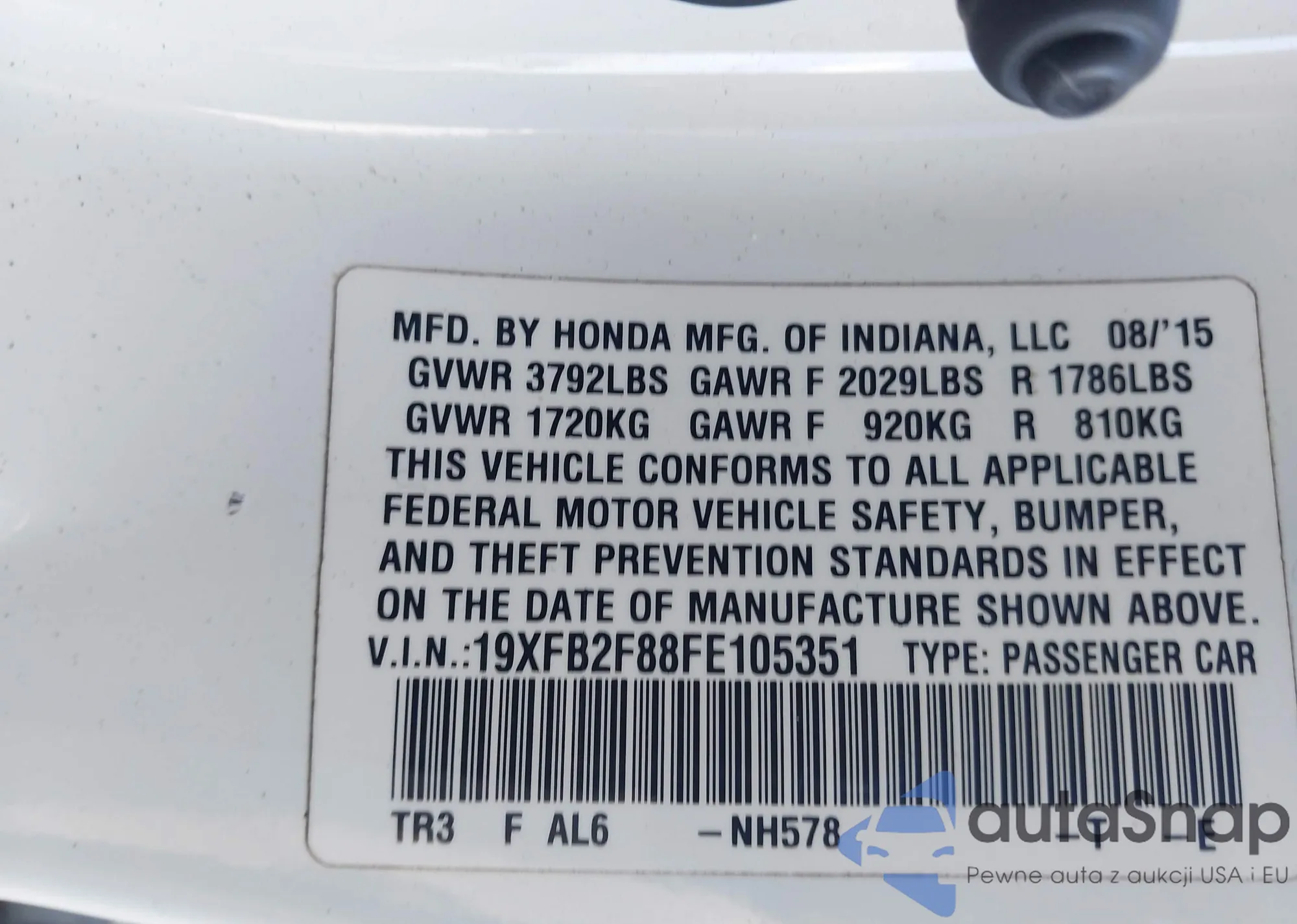 • VIN 19XFB2F88FE105351