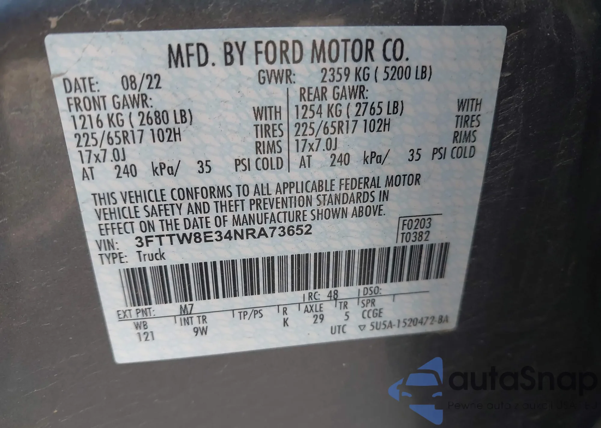 • VIN 3FTTW8E34NRA73652