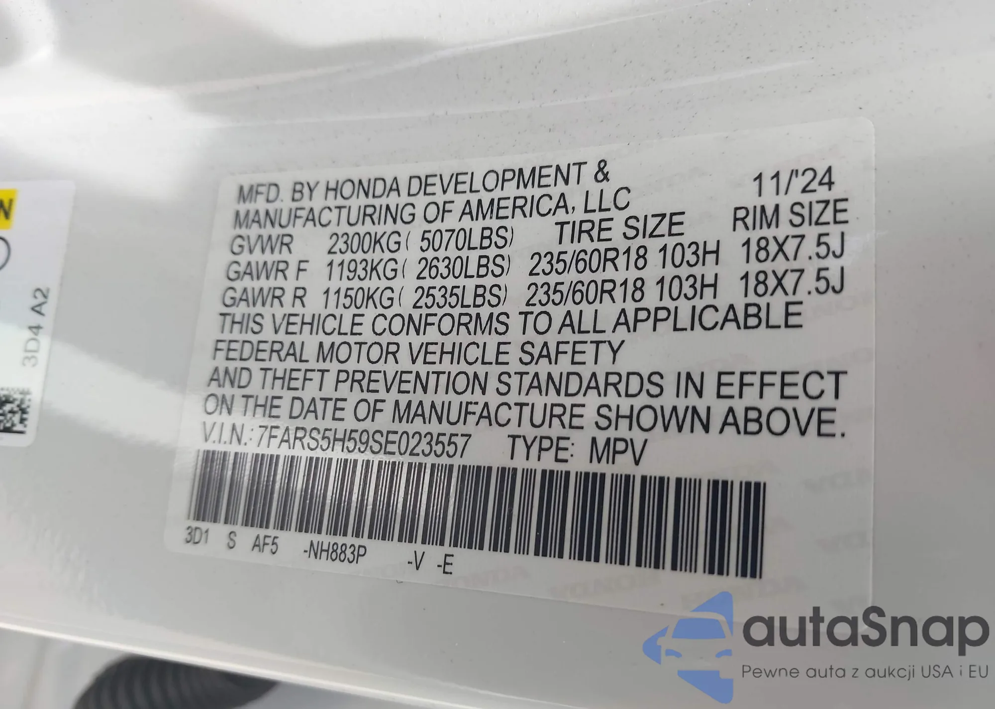 • VIN 7FARS5H59SE023557