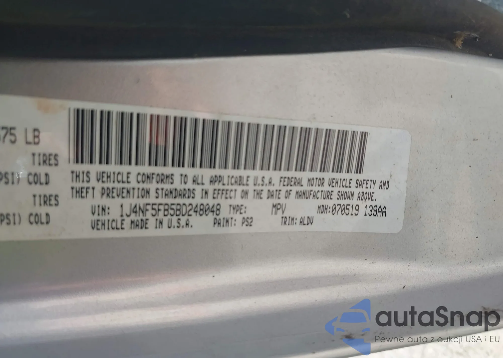 LOT: 42561777 VIN: 1J4NF5FB5BD248048