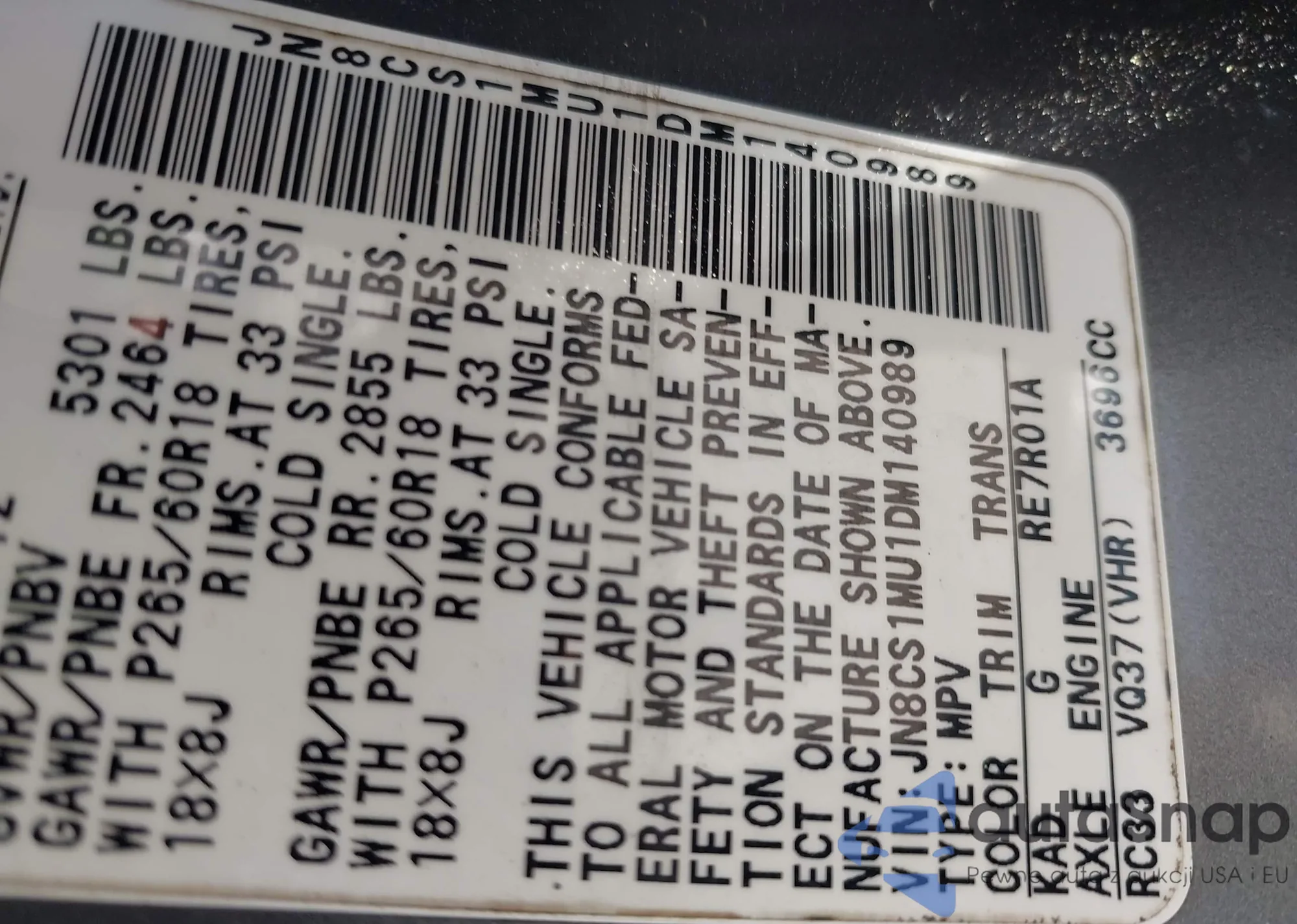 LOT: 42569871 VIN: JN8CS1MU1DM140989