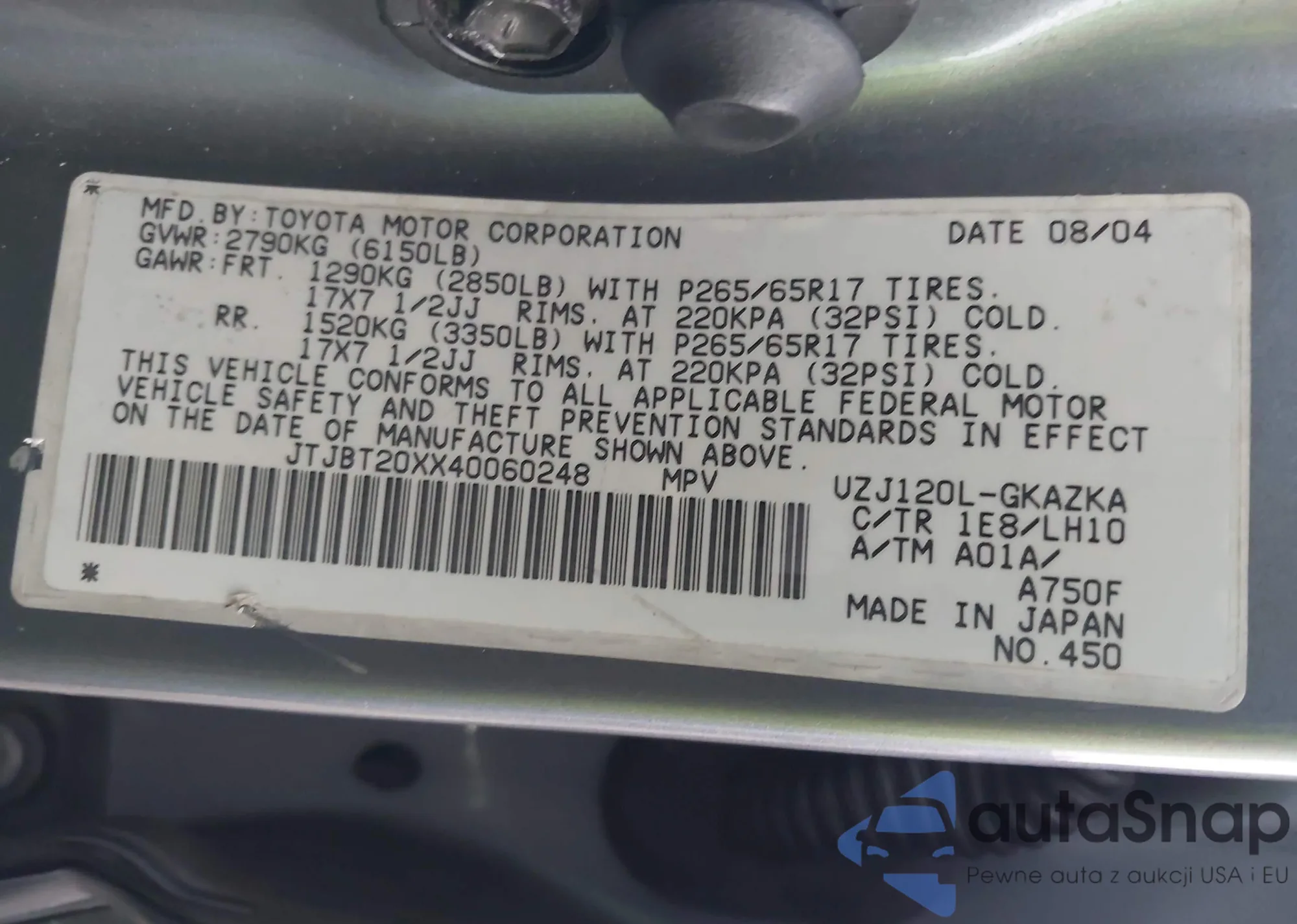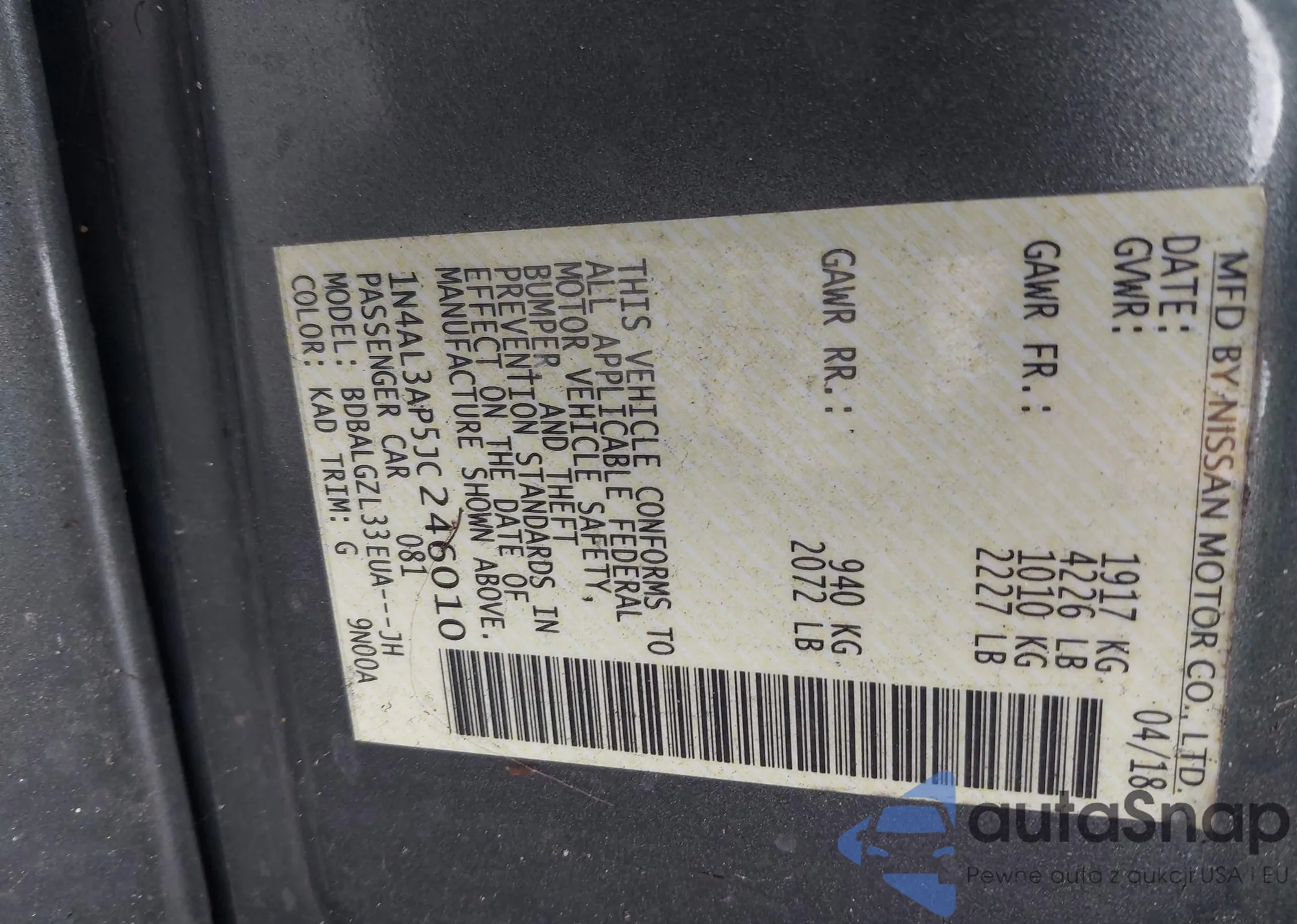 LOT: 42481332 VIN: JN1AJ0HR3AM751403