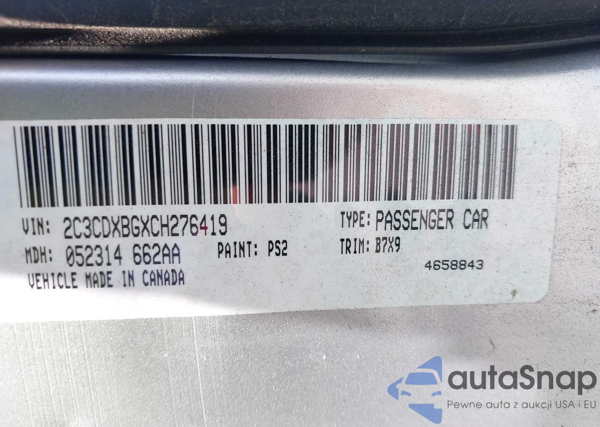LOT: 42666654 VIN: 2C3CDXBGXCH276419