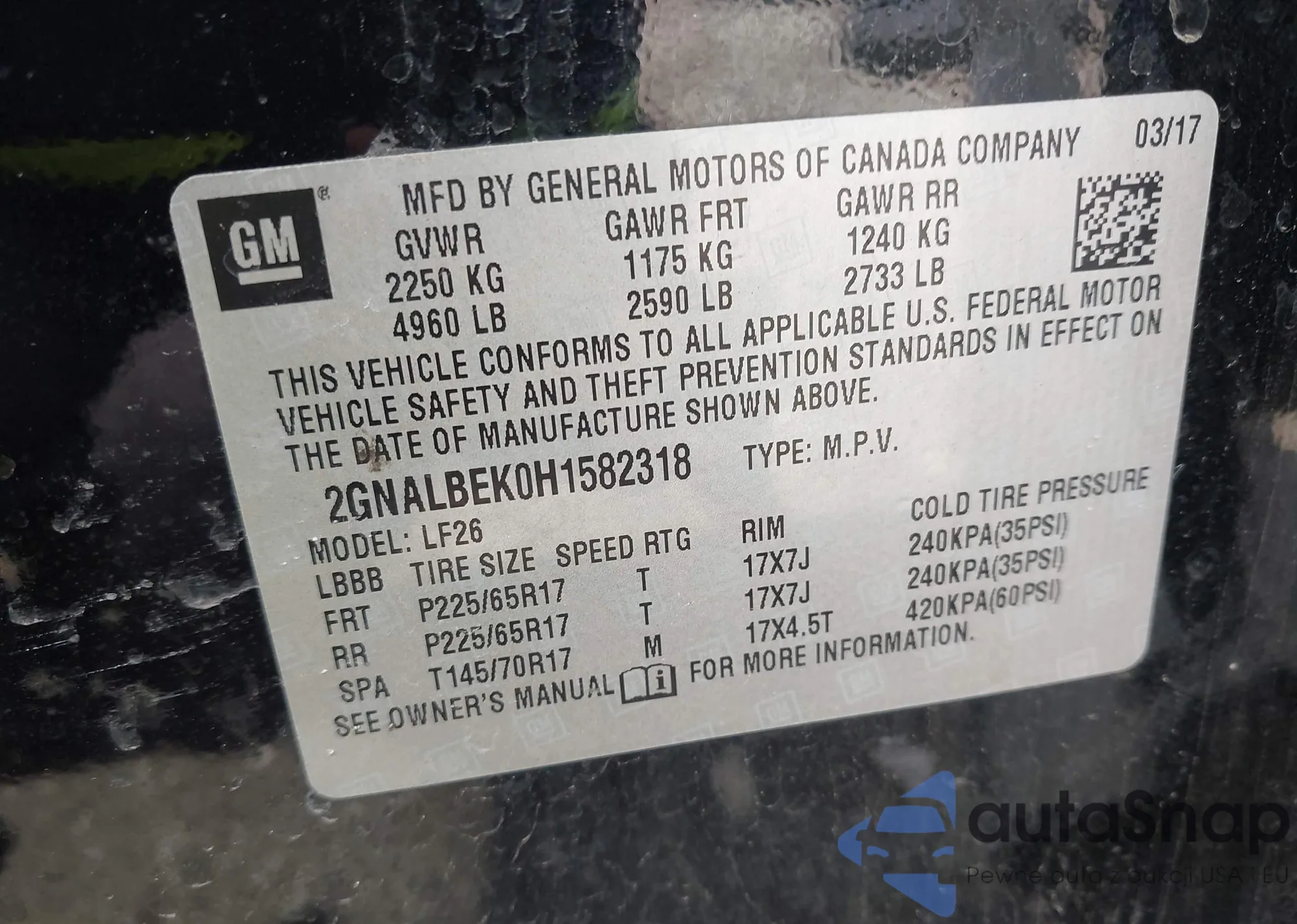 • VIN 2GNALBEK0H1582318