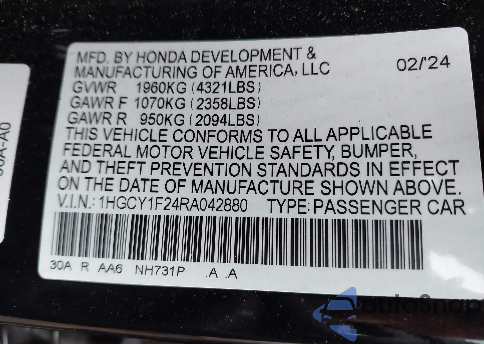 LOT: 42179896 VIN: 1N4BL3AP6DC175232