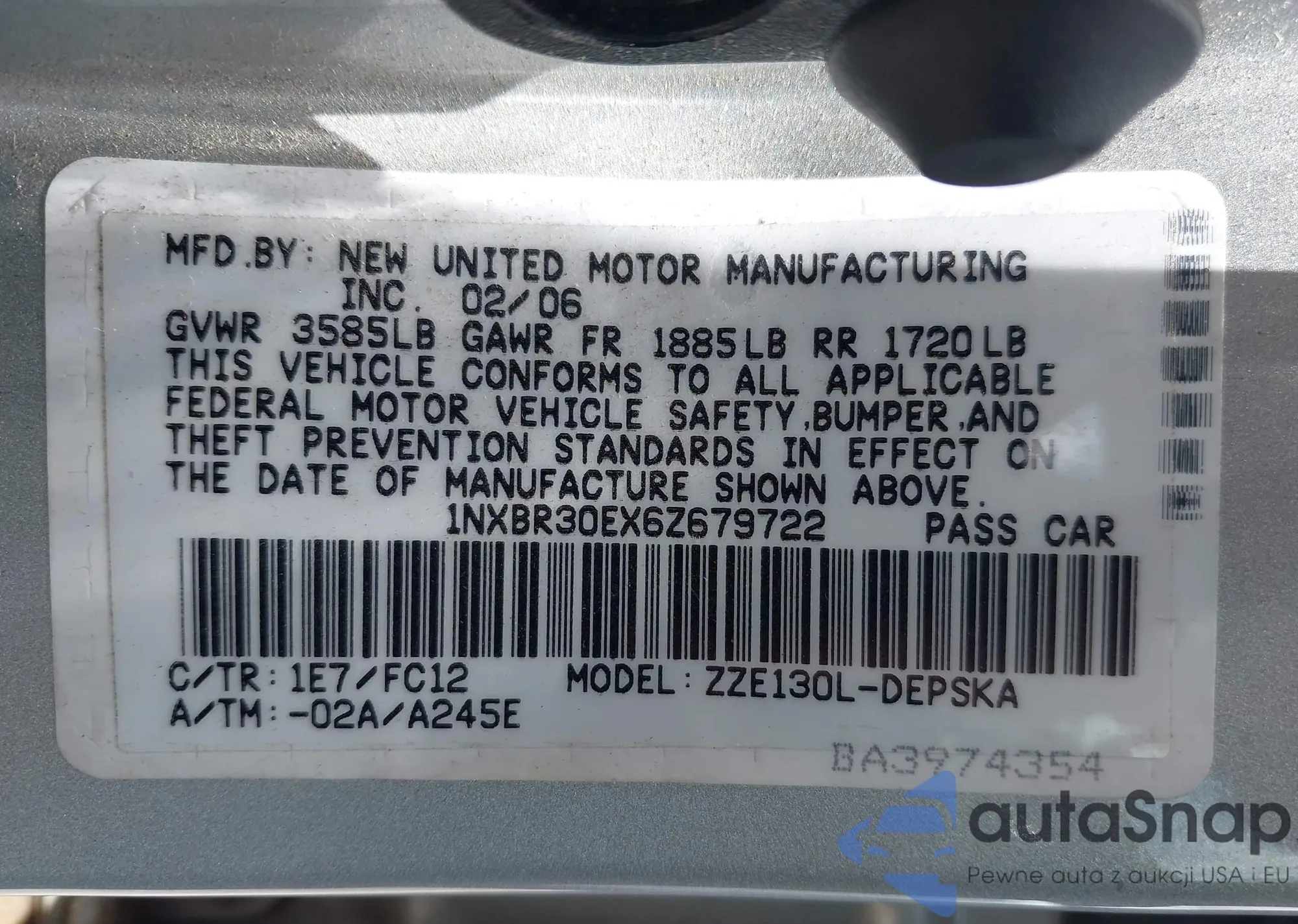 • VIN 2T1BR32E45C462647