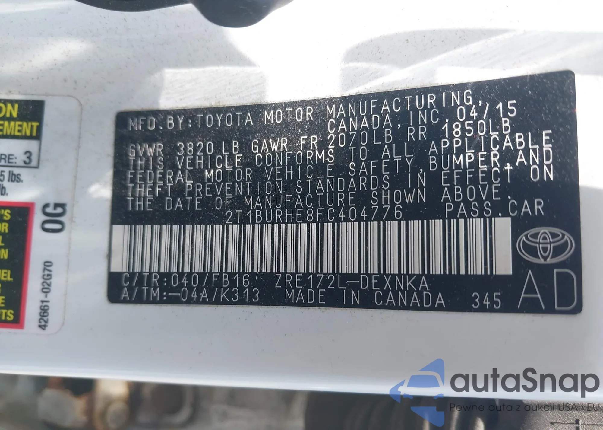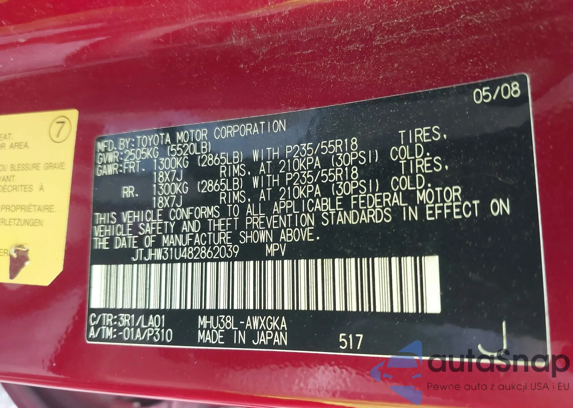 LOT: 42730863 VIN: JTJHW31U482862039