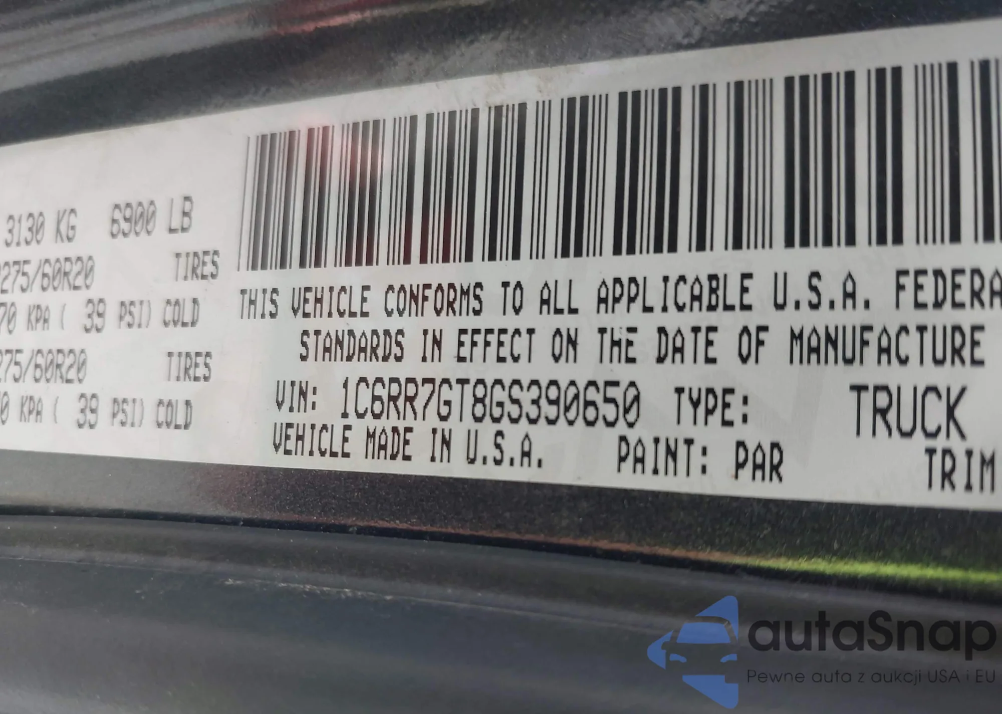 • VIN 1C6RR7GT8GS390650