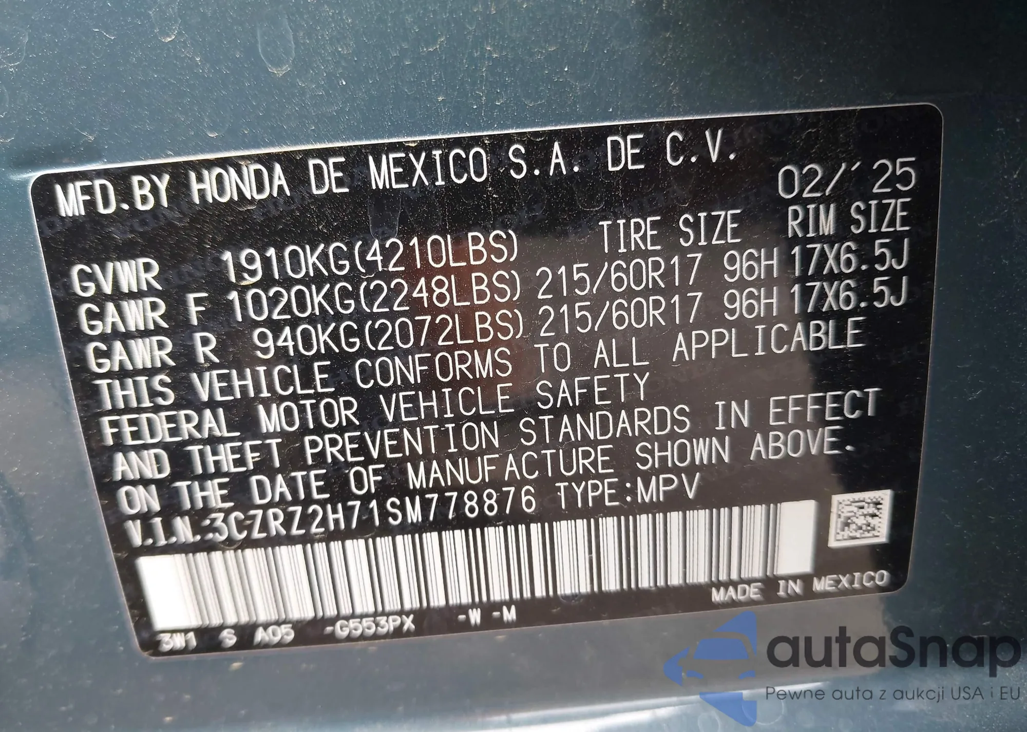 • VIN 3CZRZ2H71SM778876