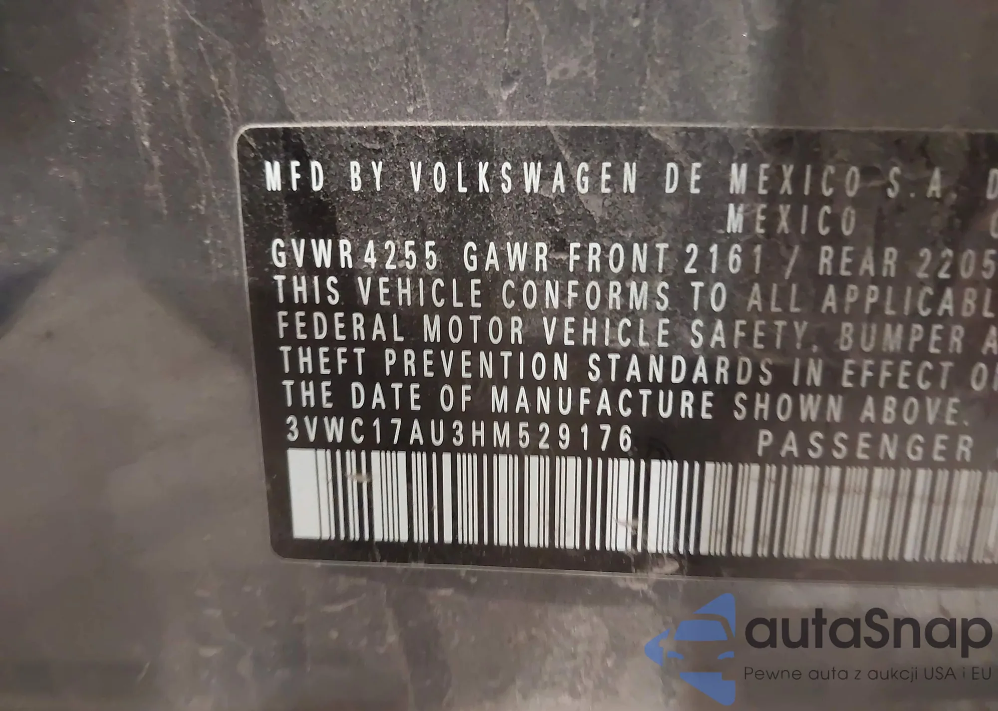 • VIN 3VWC17AU3HM529176