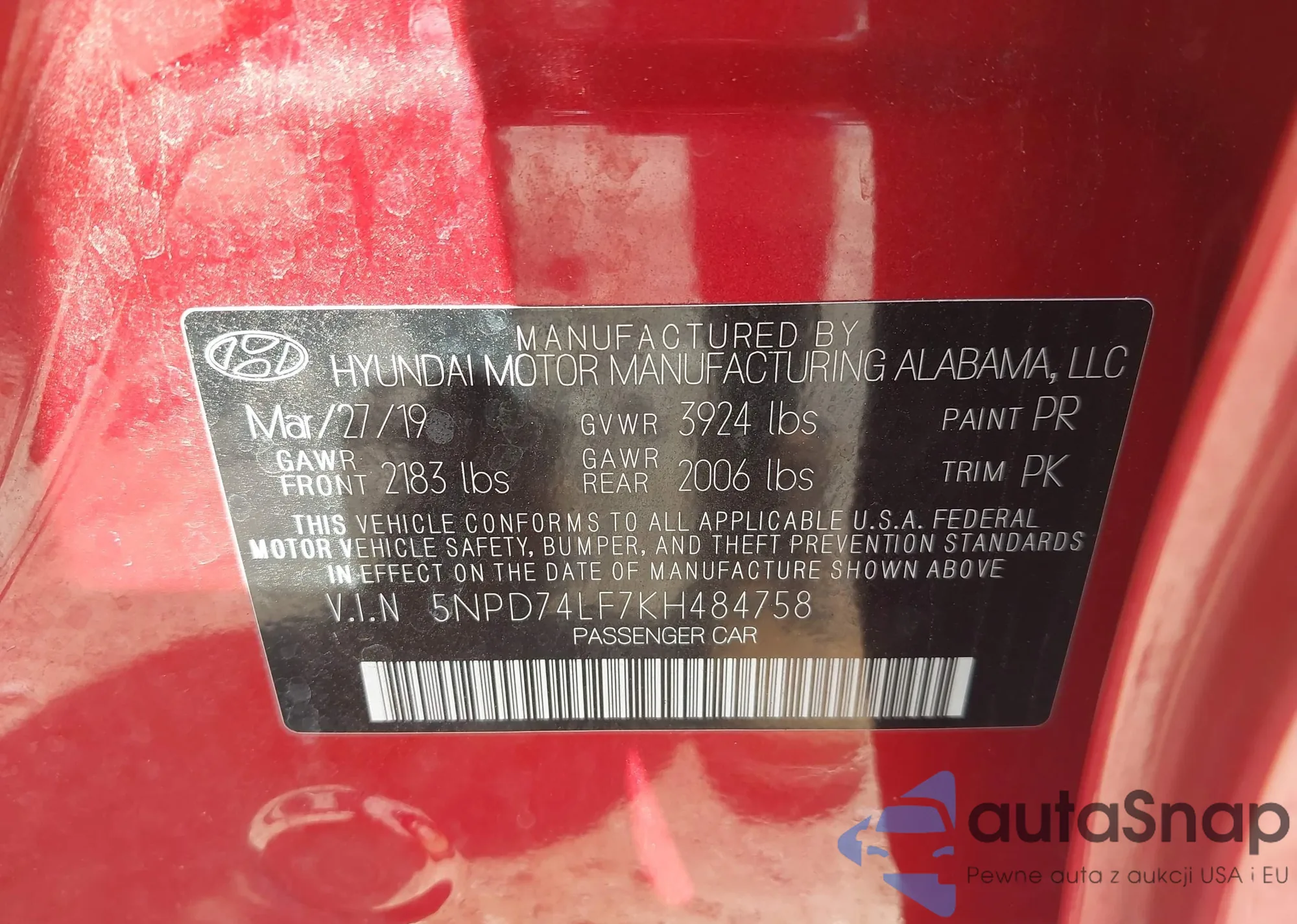 • VIN 5NPD74LF7KH484758