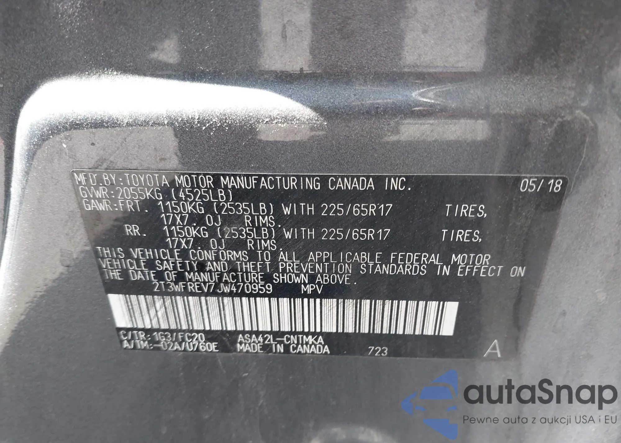 LOT: 42837098 VIN: 2T3WFREV7JW470959