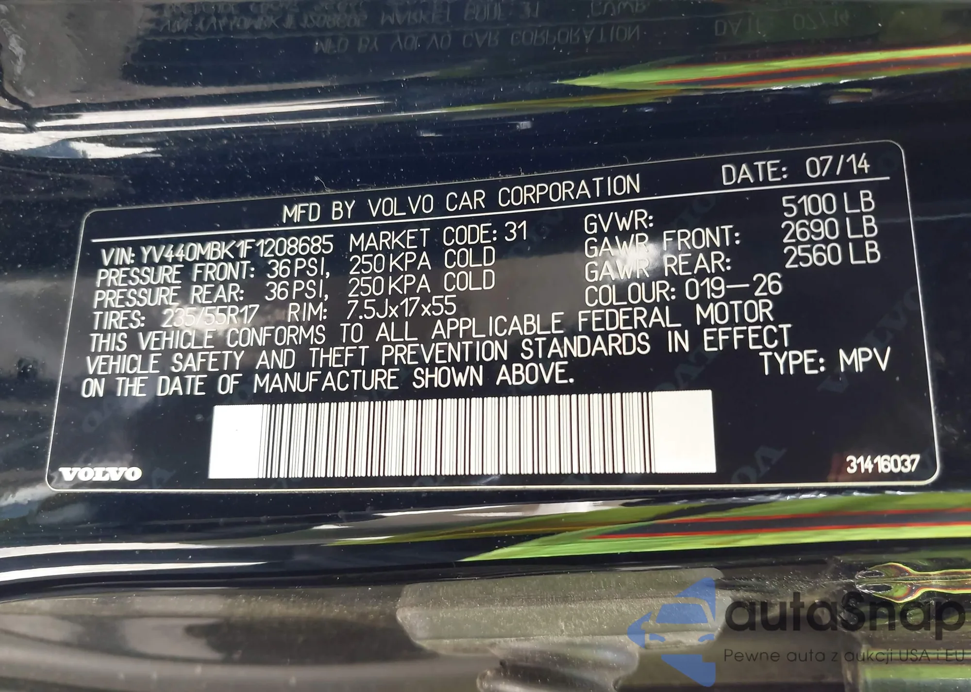 • VIN YV440MBK1F1208685