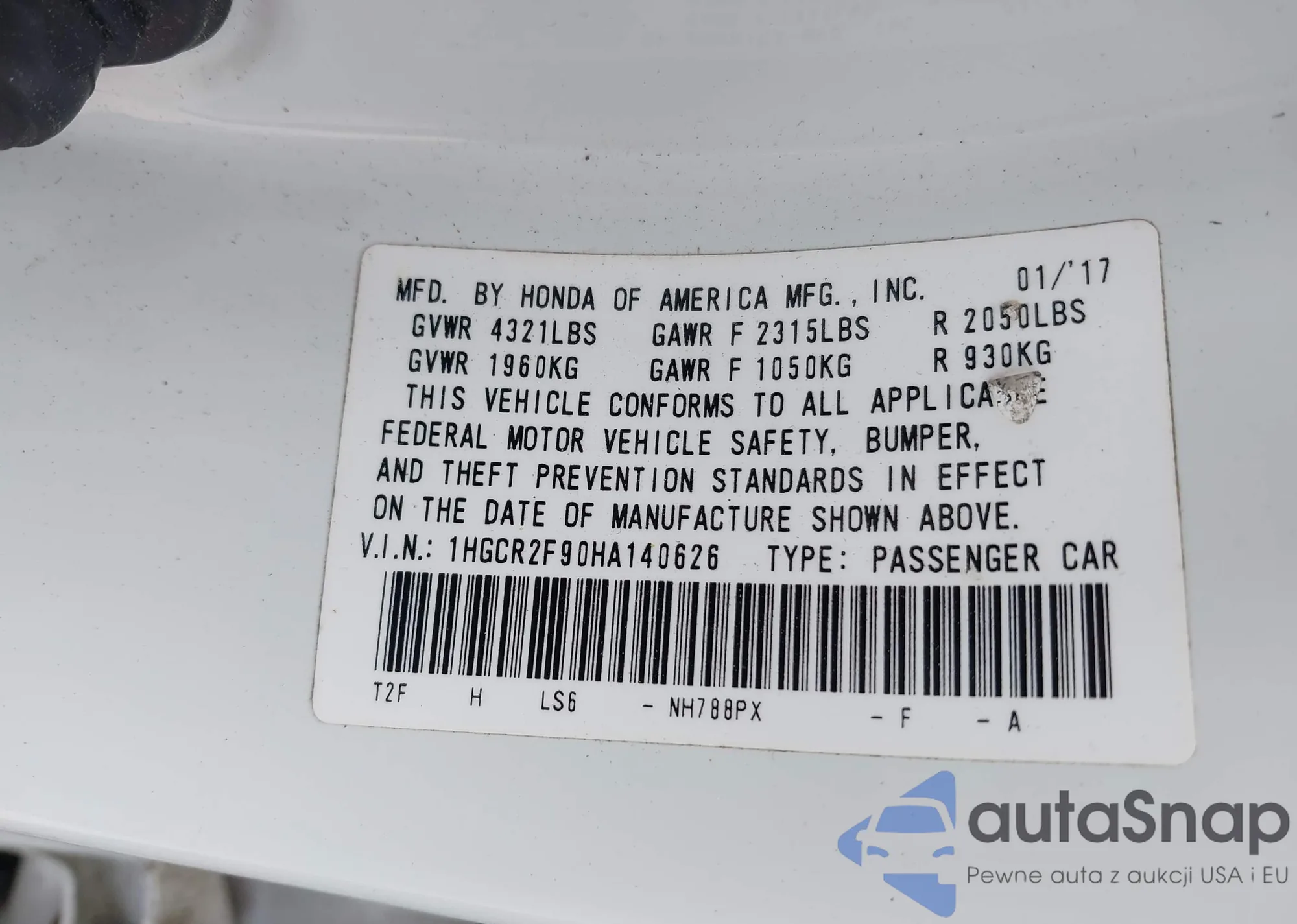 • VIN 2HKRW2H51MH681537