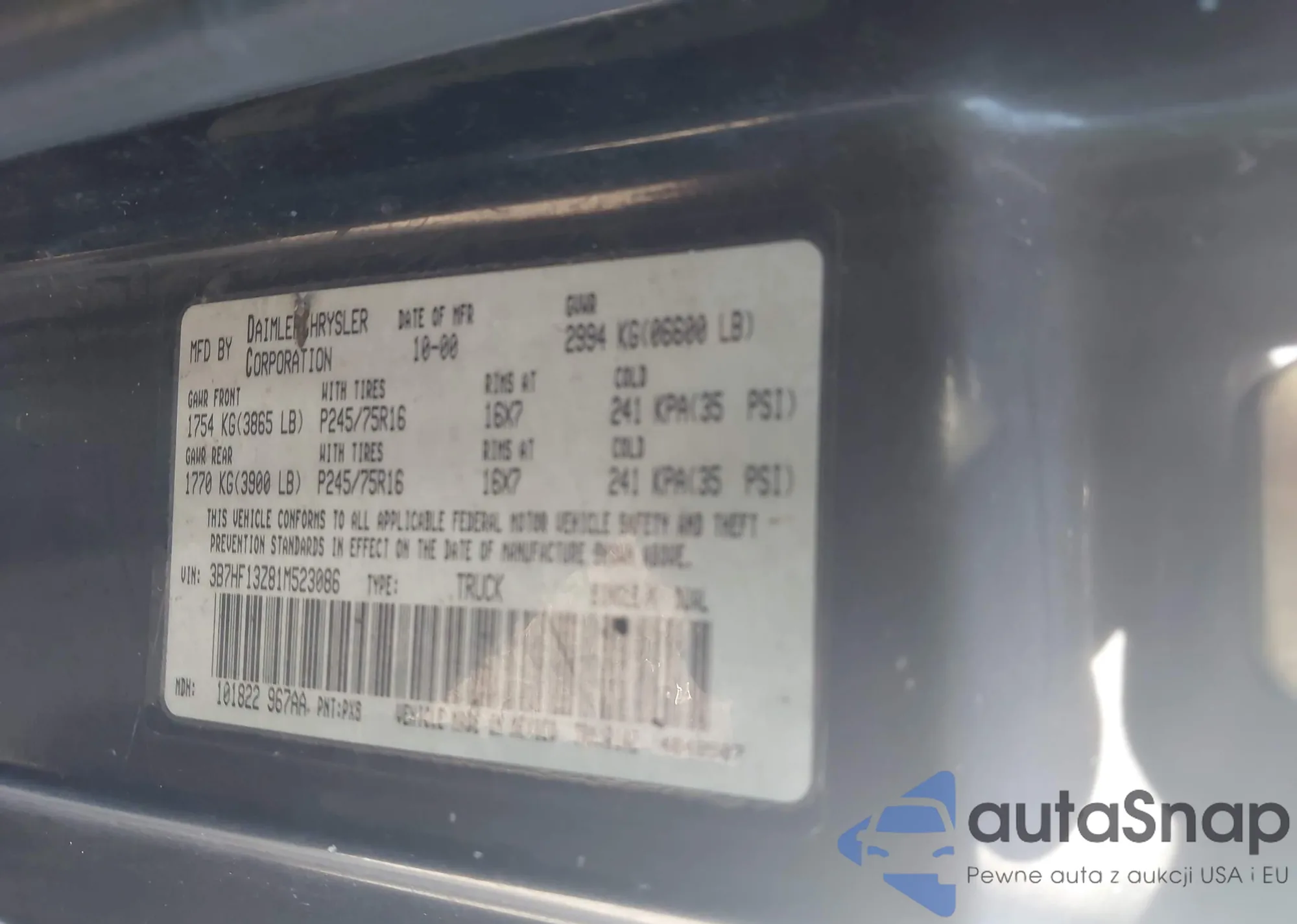 • VIN 3B7HF13Z81M523086