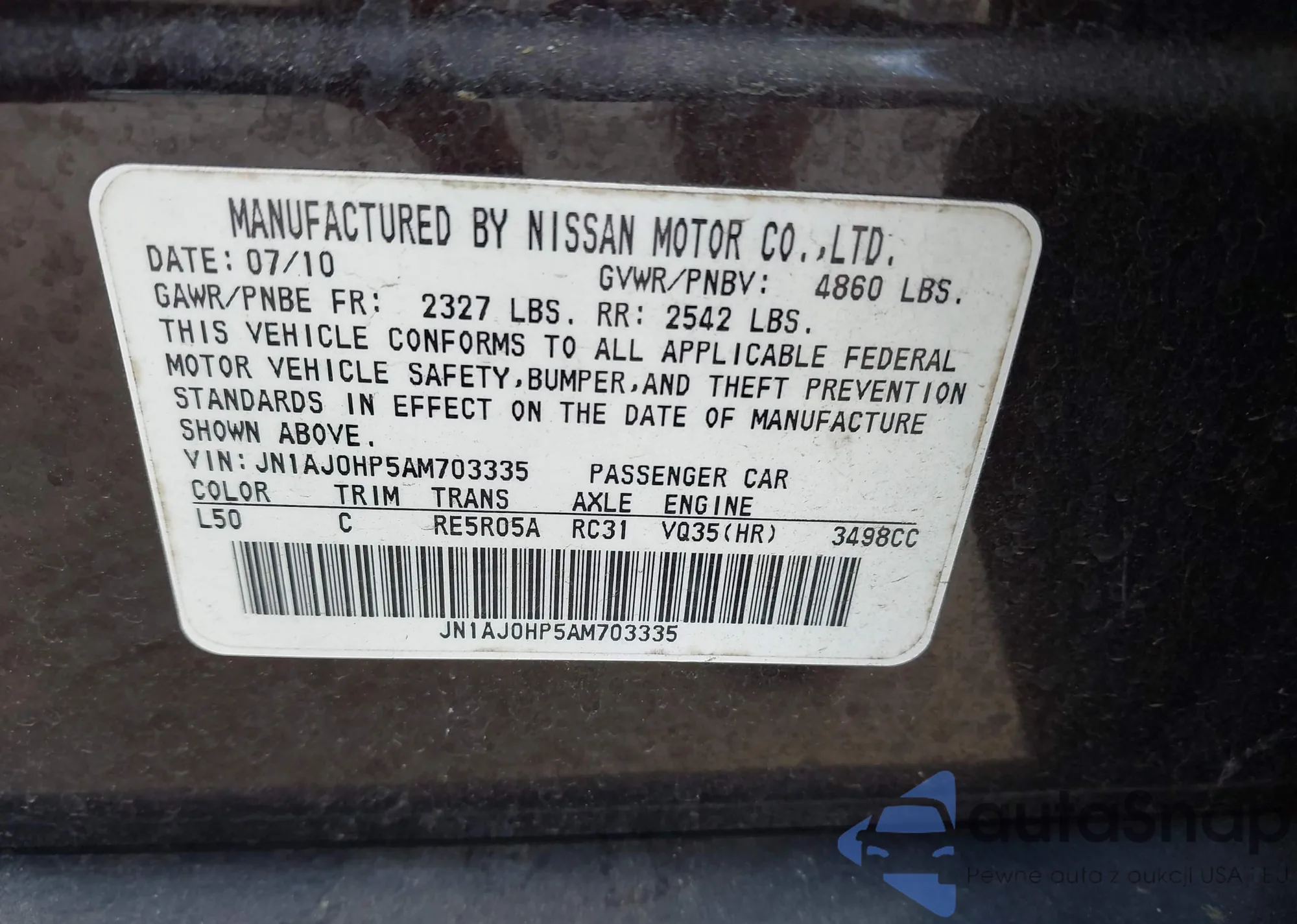 • VIN JN1AJ0HP5AM703335