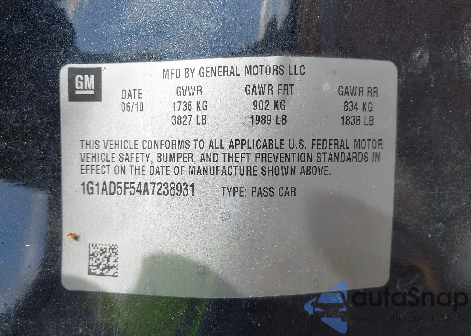 LOT: 42733538 VIN: 1G1AD5F54A7238931
