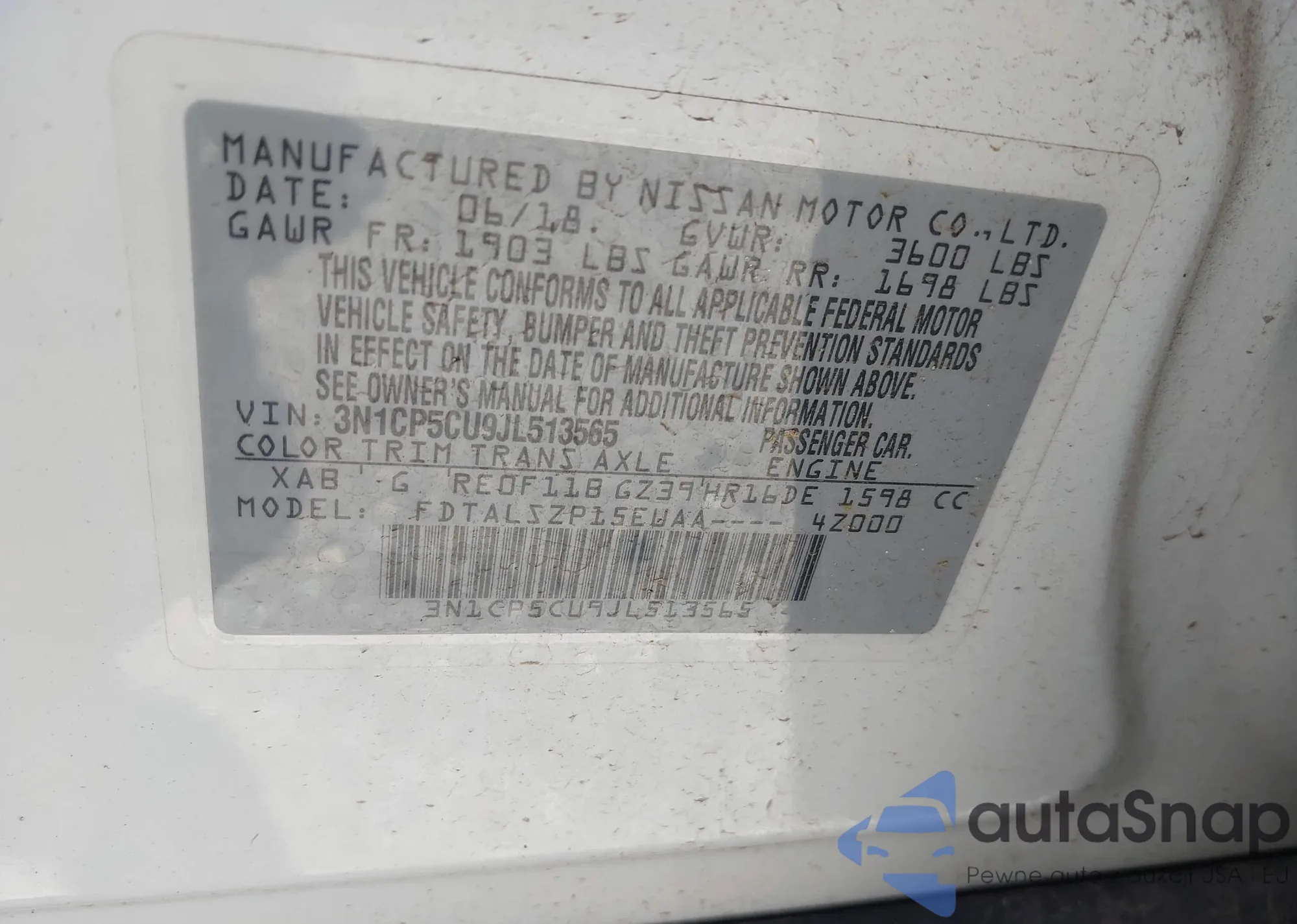LOT: 42814485 VIN: 1N4AL11D65C390973
