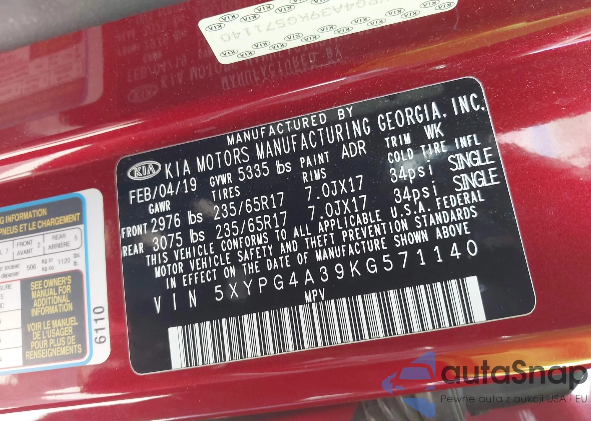 • VIN 5XYPG4A39KG571140
