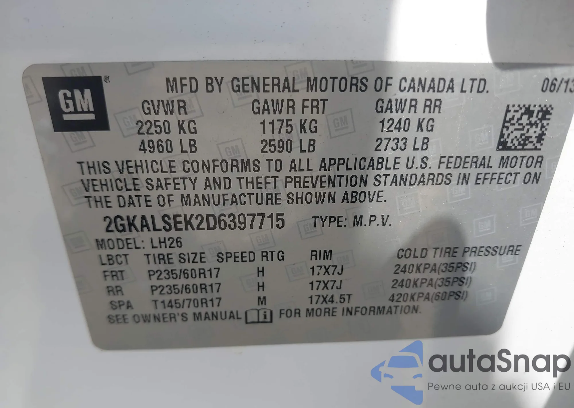 • VIN 4T1BF1FK6DU297582