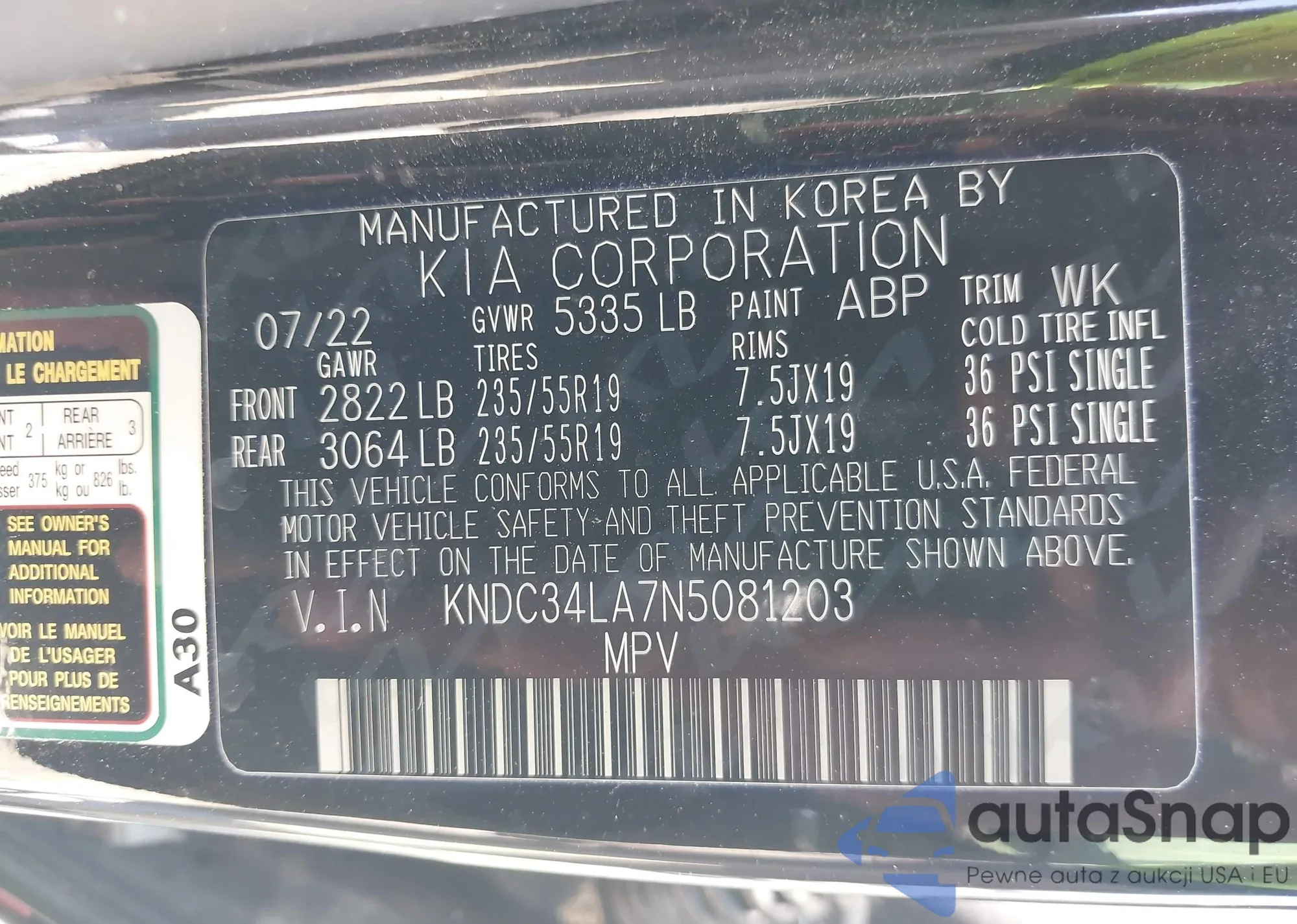 LOT: 42177815 VIN: KNDC34LA7N5081203