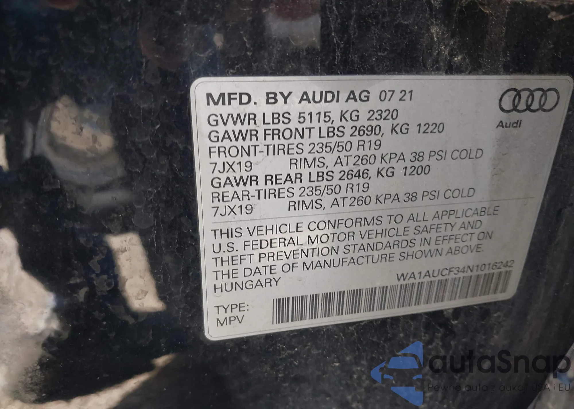 LOT: 42341953 VIN: WA1AUCF34N1016242