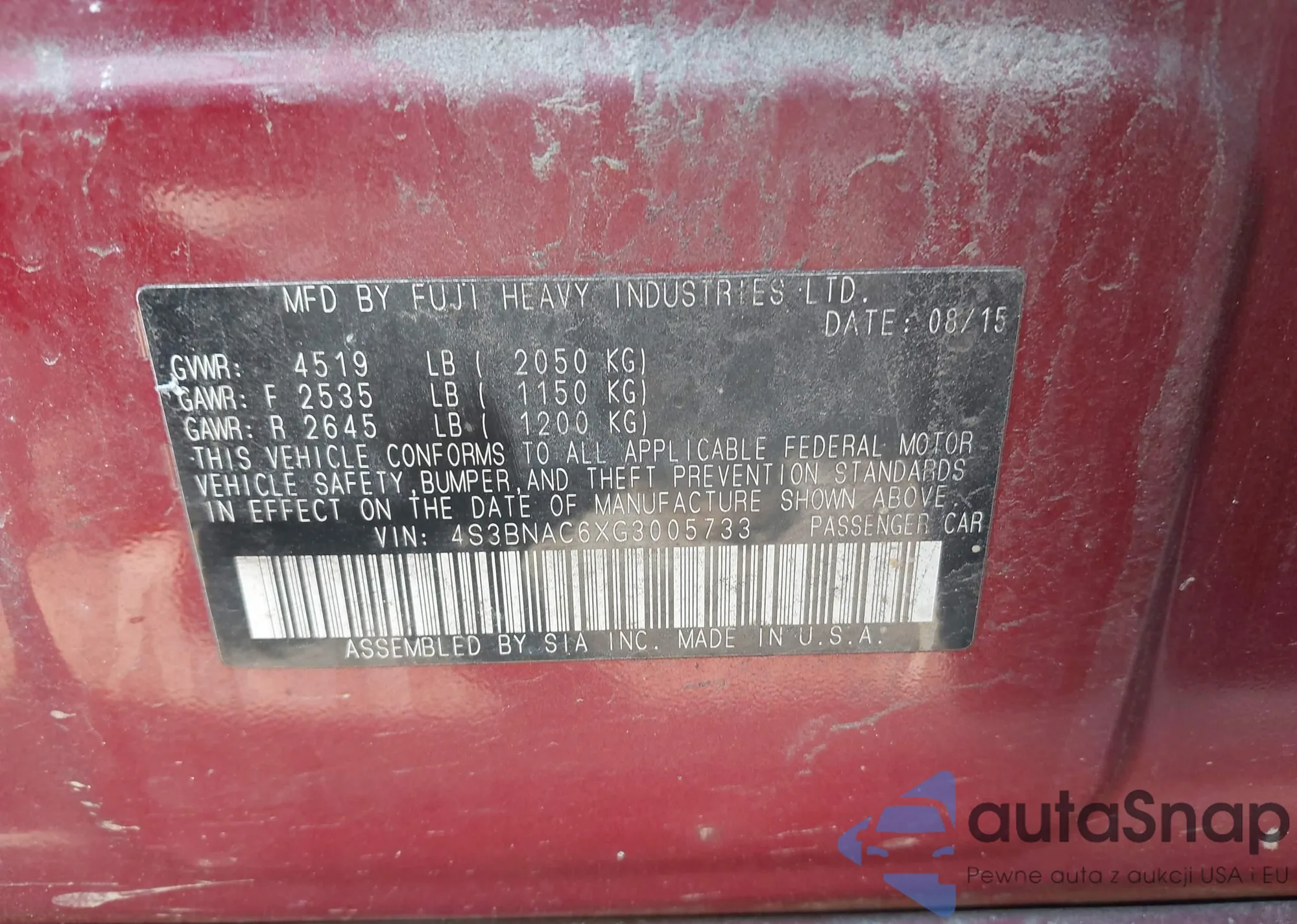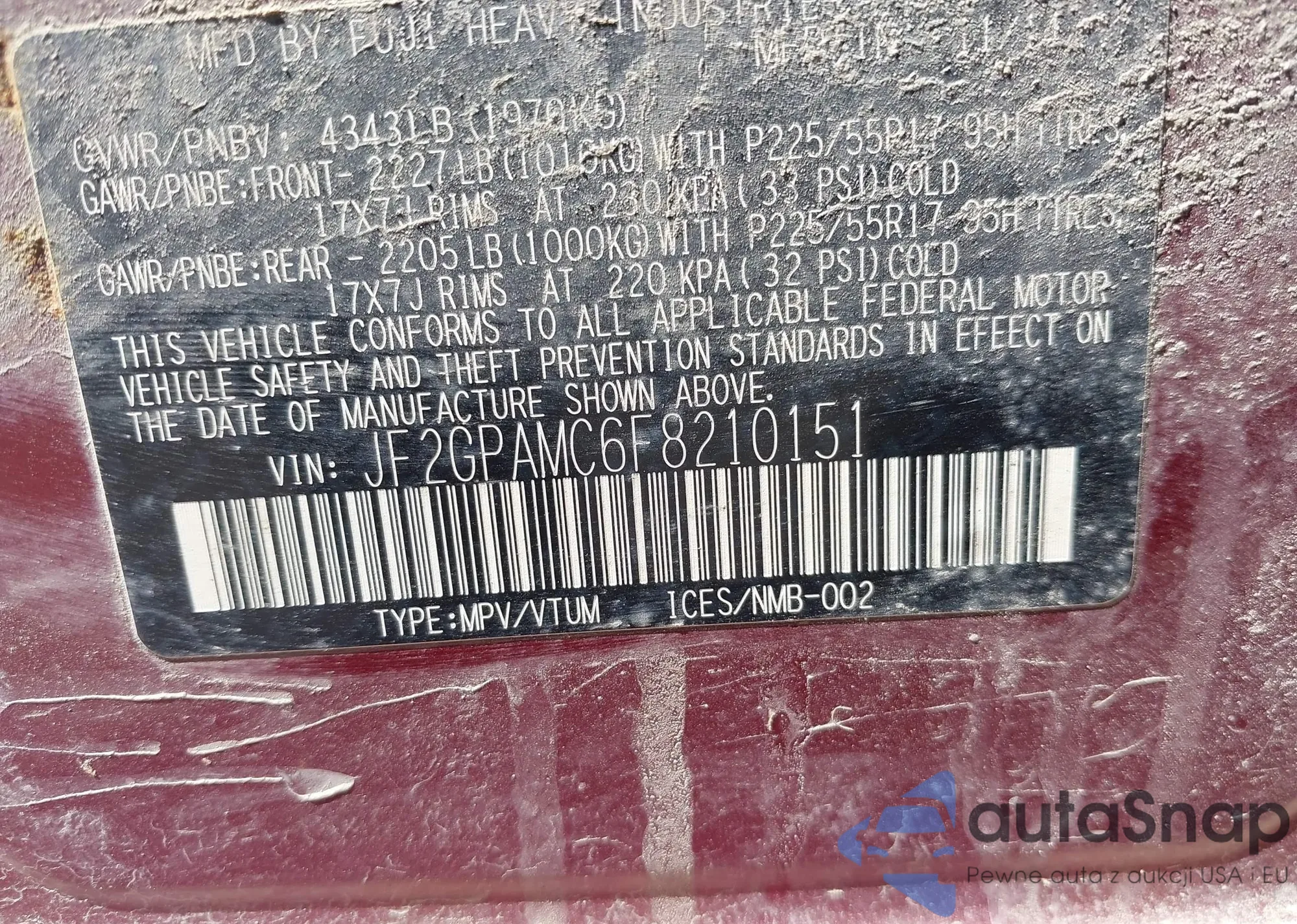 LOT: 42118637 VIN: JF1GJAC66EG023529