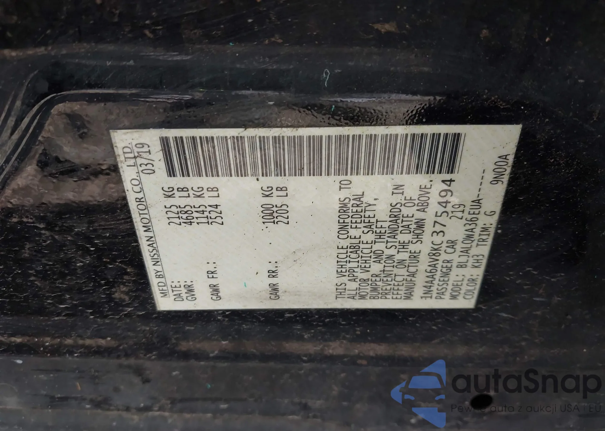 • VIN 1N4AA6AV8KC375494