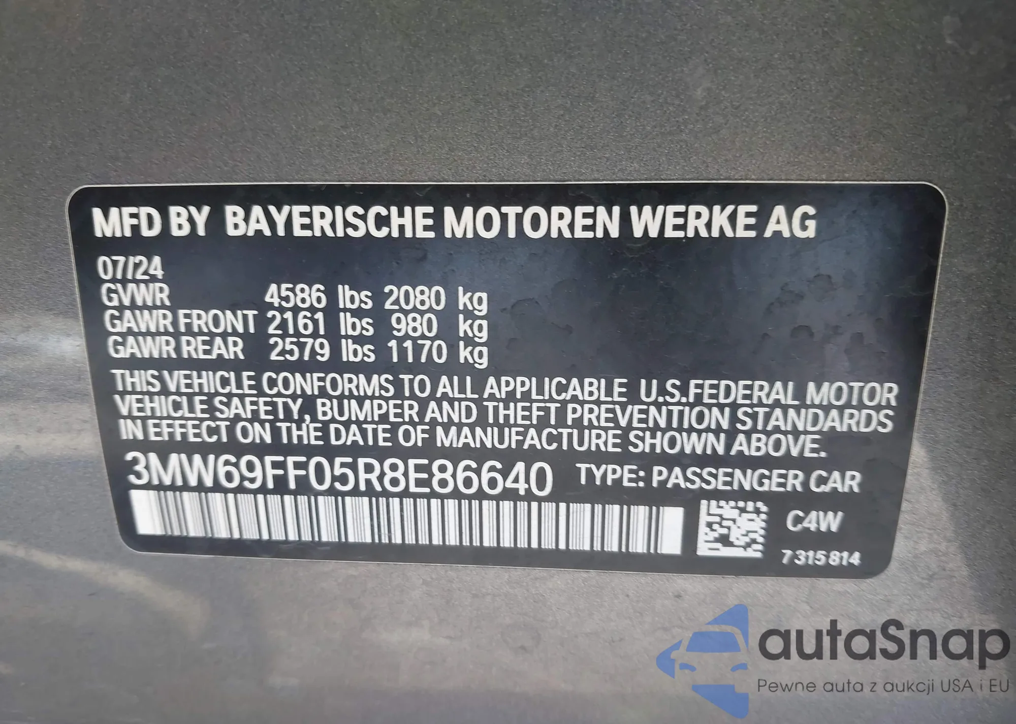 • VIN 3MW69FF05R8E86640